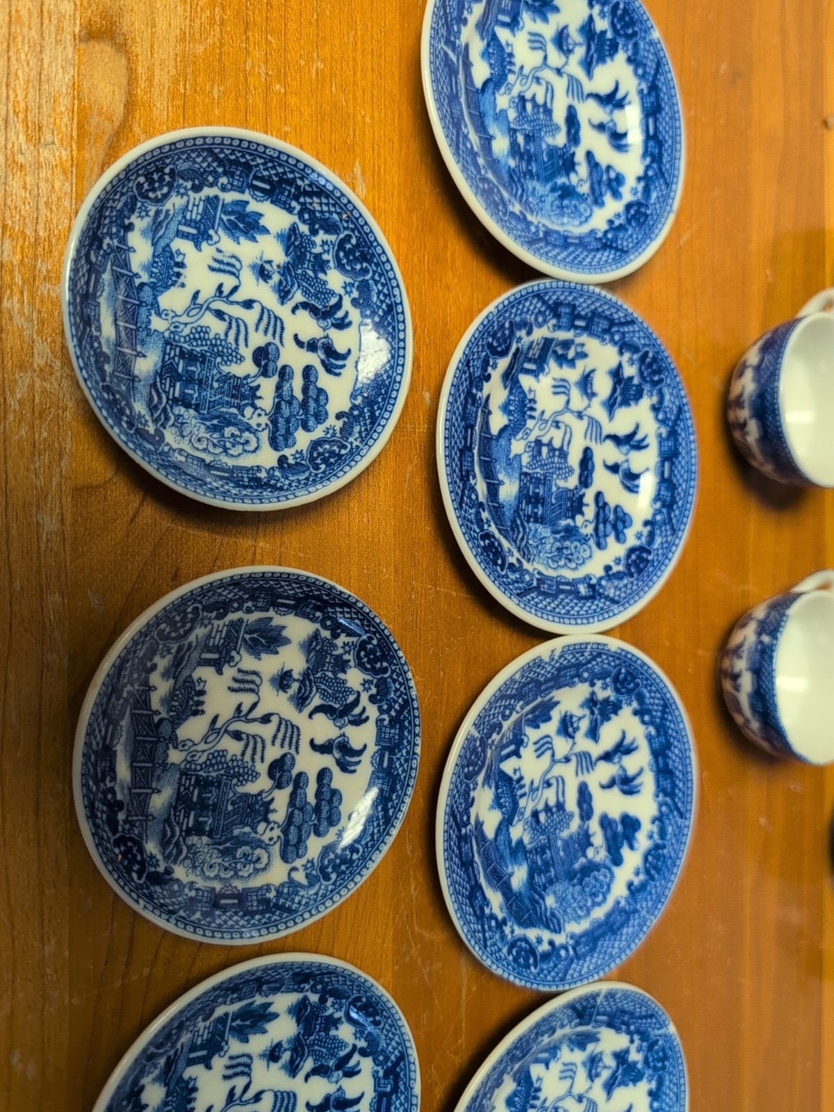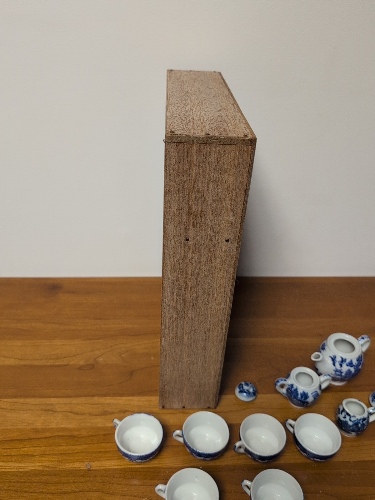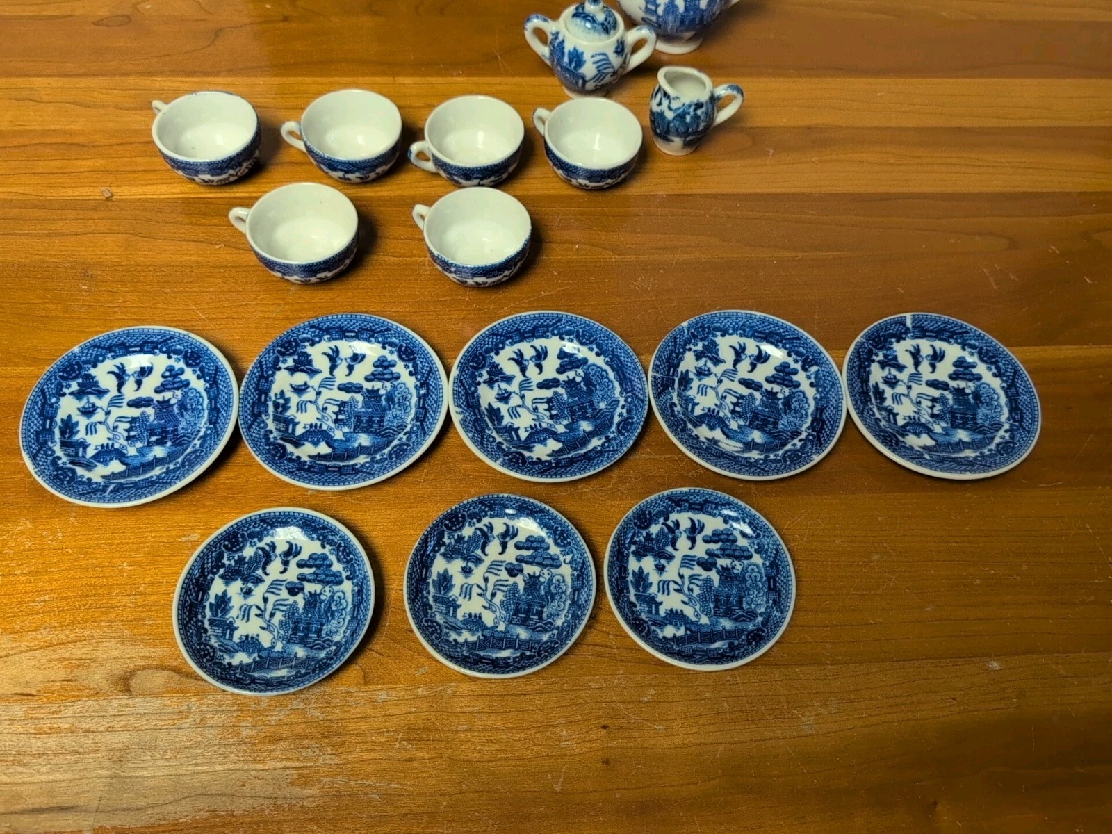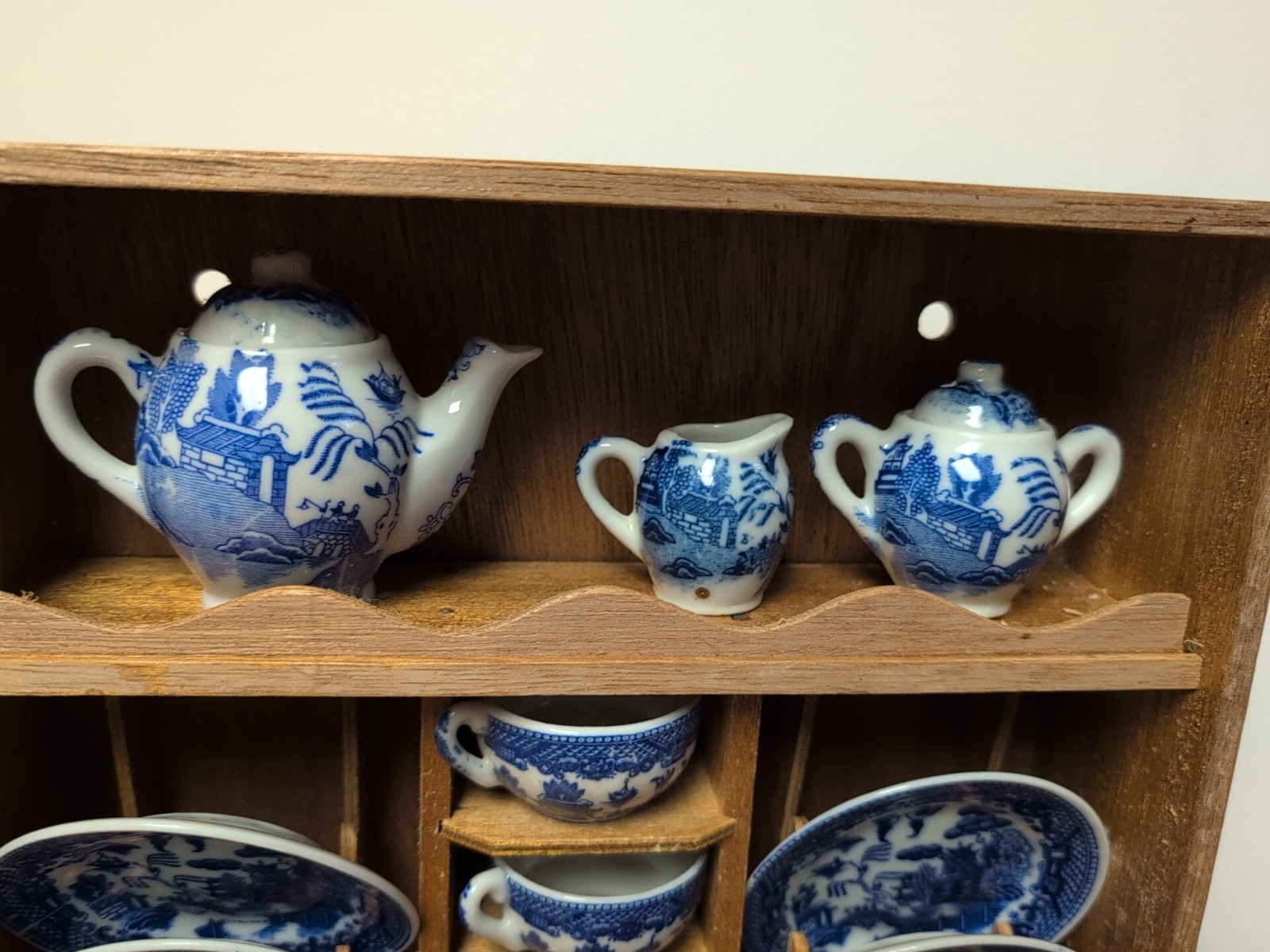 Vintage Antique Toy Children s Blue Willow Tea Set China Plates Cups Pot Shelf