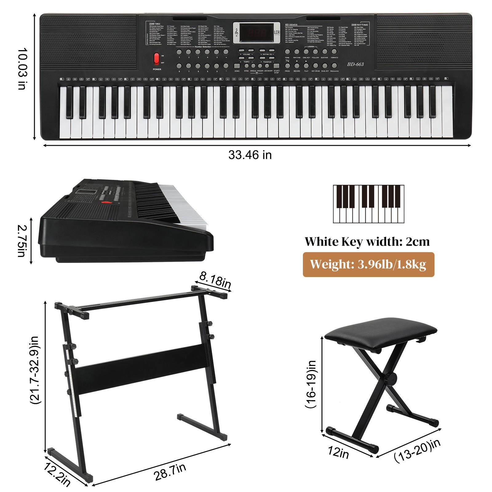 Ktaxon 61 Key Lighting Keyboard with Piano Stand, Piano Bench Black US