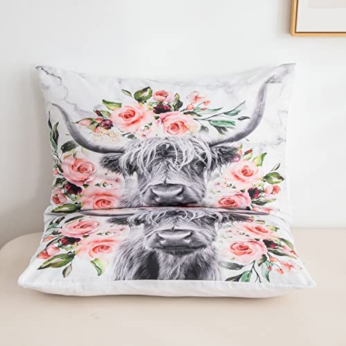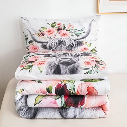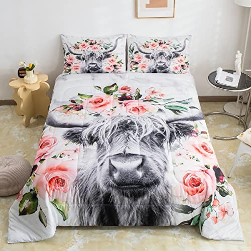 Highland Cow Flower Comforter Set Size Bull Cattle Bedding Set Queen Multi 08