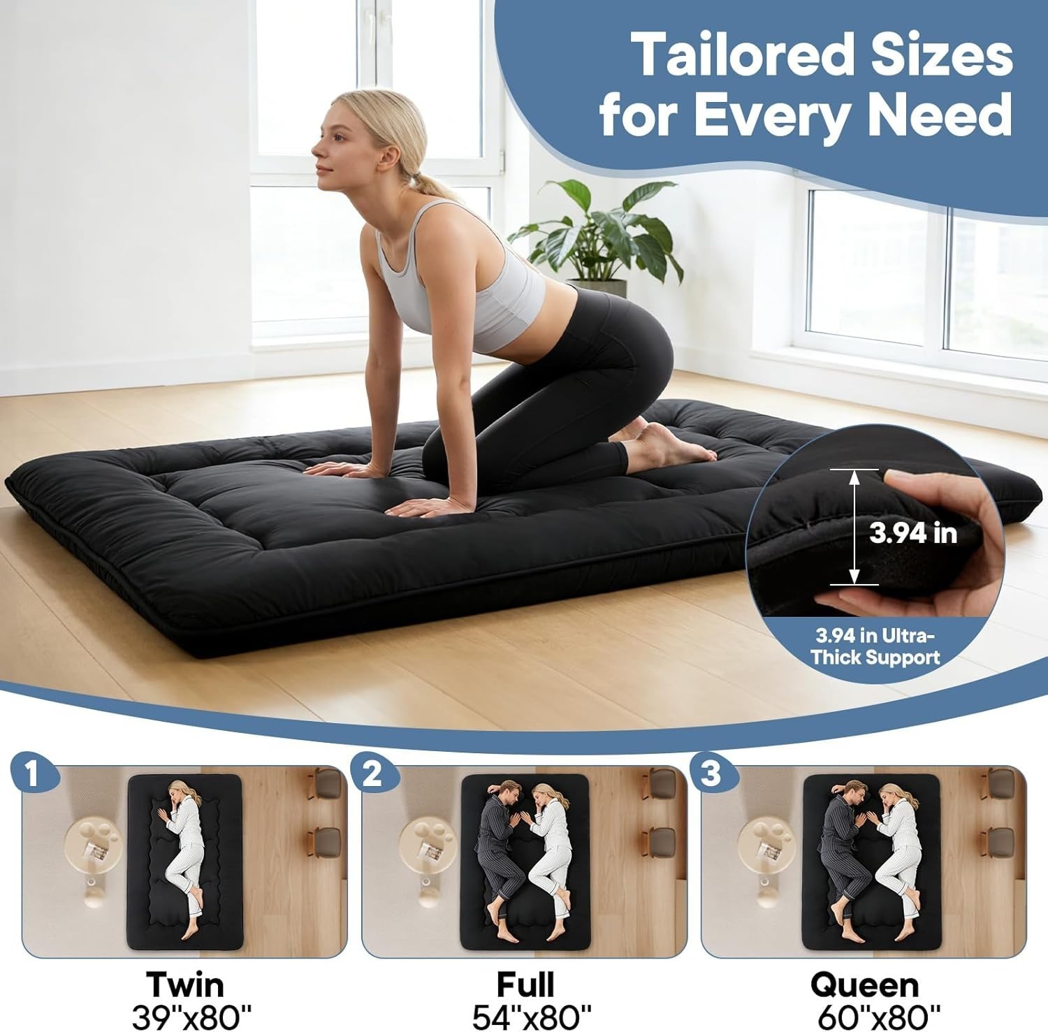 4 Roll Up Floor Mattress Japanese Foldable Futon Mat Tatami w/ Removable Cover