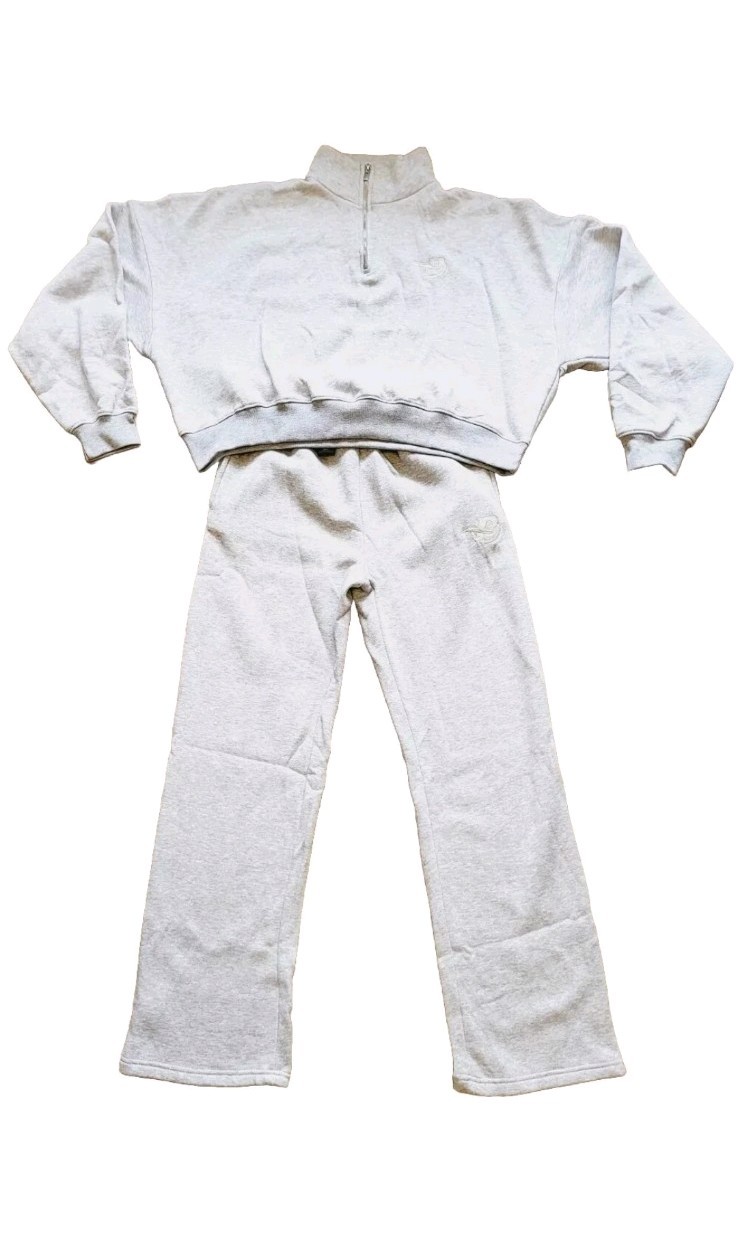 Pretty Little Thing Ash Grey Tracksuit Bottoms Jumper, Wide Leg Joggers Top