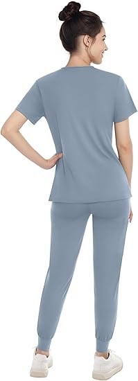 Stretch Medical Scrubs Set Nurse Uniform V-Neck Top and Joggers Pants Workware