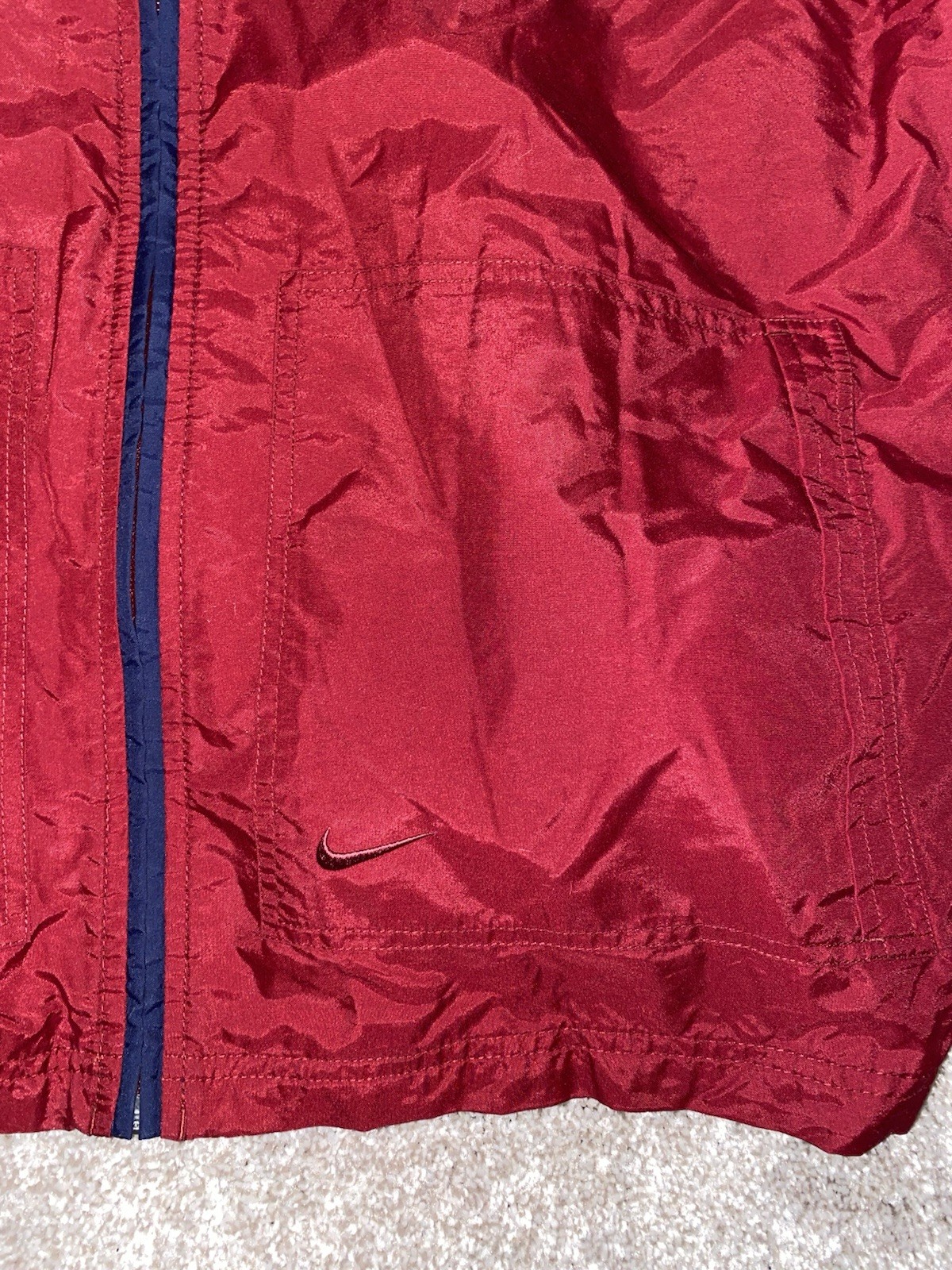 VTG Nike Gray Tag Track Jacket Zipper Pockets Mens M Swoosh Nylon Blend Red/Blue