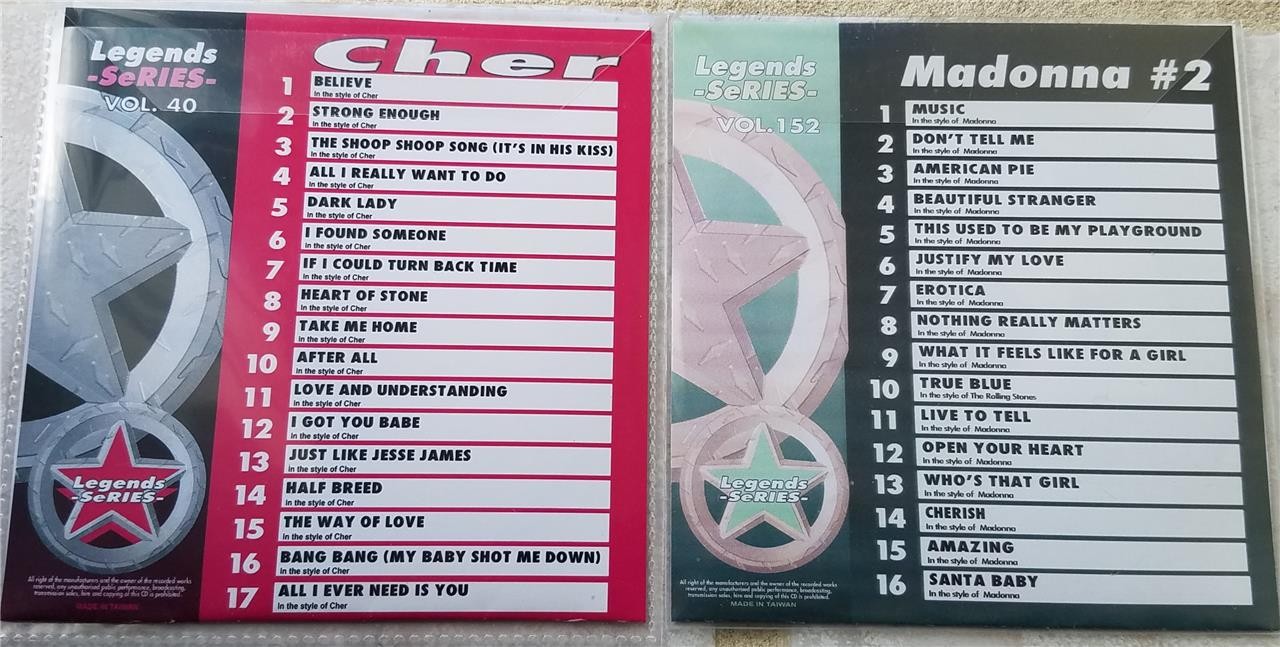 как выглядит LEGENDS 2 CDG KARAOKE DISCS 1980S MADONNA CHER POP OLDIES CD G MUSIC SONGS set фото