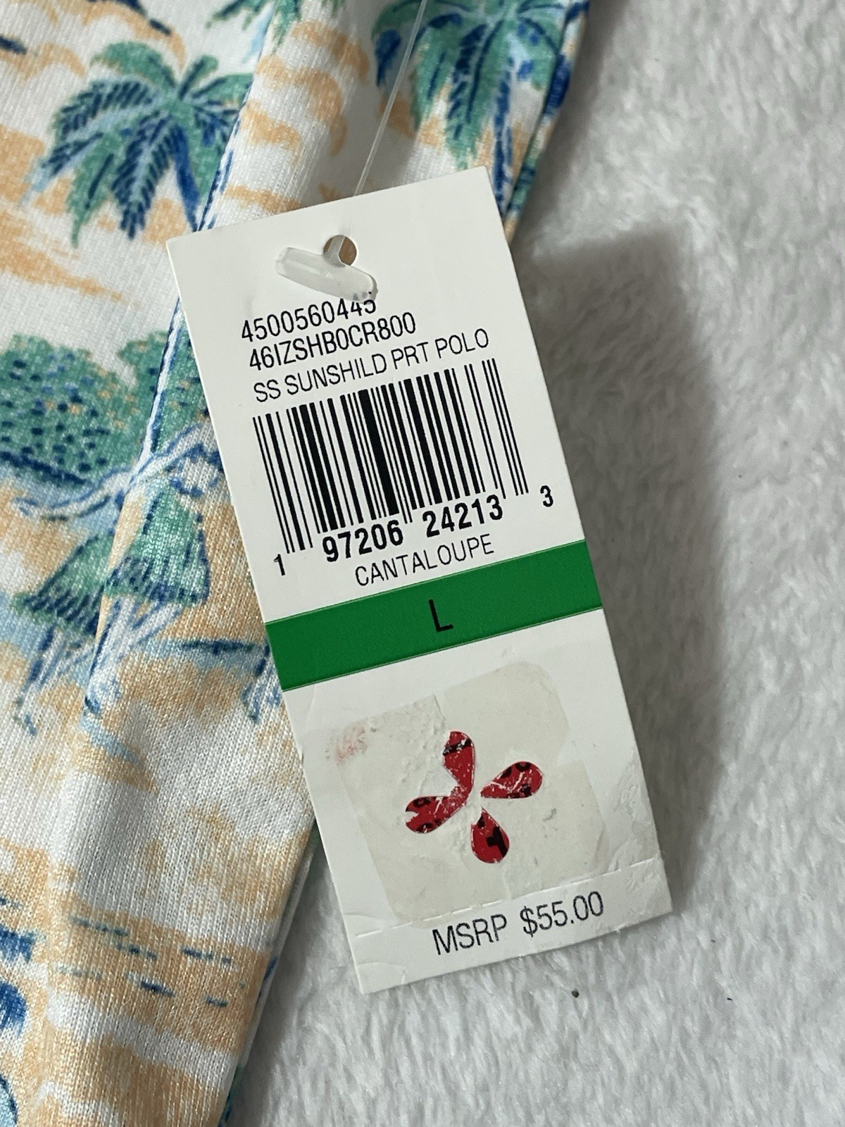 IZOD Saltwater Sun Shield Polo Shirt L Tropical Print UPF30 Quick Dry NWT