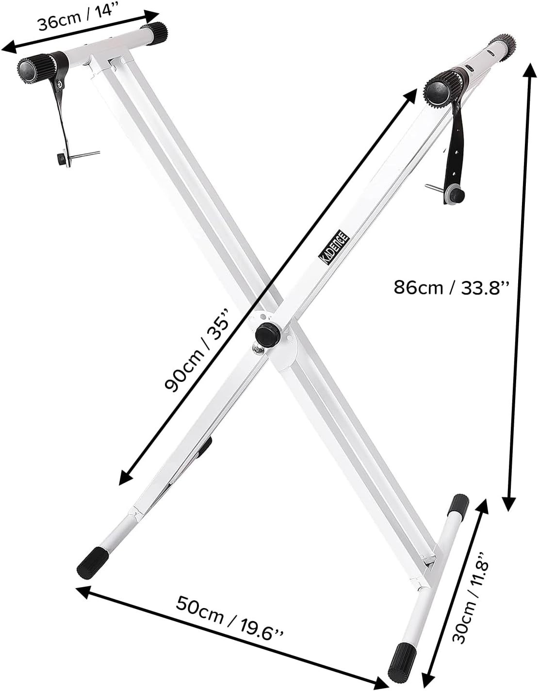 Heavy-Duty, Double-X, Adjustable Piano Keyboard Stand with Locking Straps White