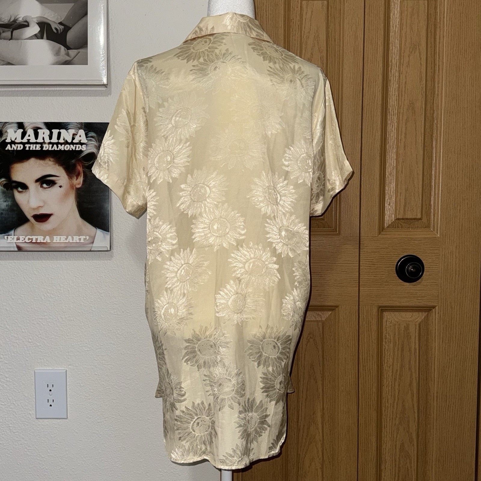 как выглядит VTG 90s Victoria s Secret Sleep Shirt Women Small Yellow Floral Satin Button-Up фото
