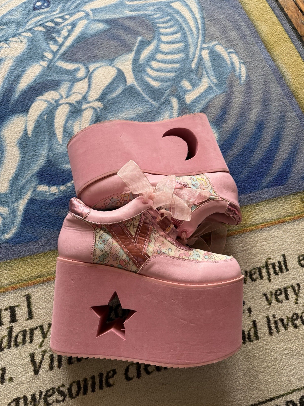как выглядит Rare Sanrio Little Twin Stars Kawaii Platform Cosplay Shoes Sz 8 Hello Kitty фото