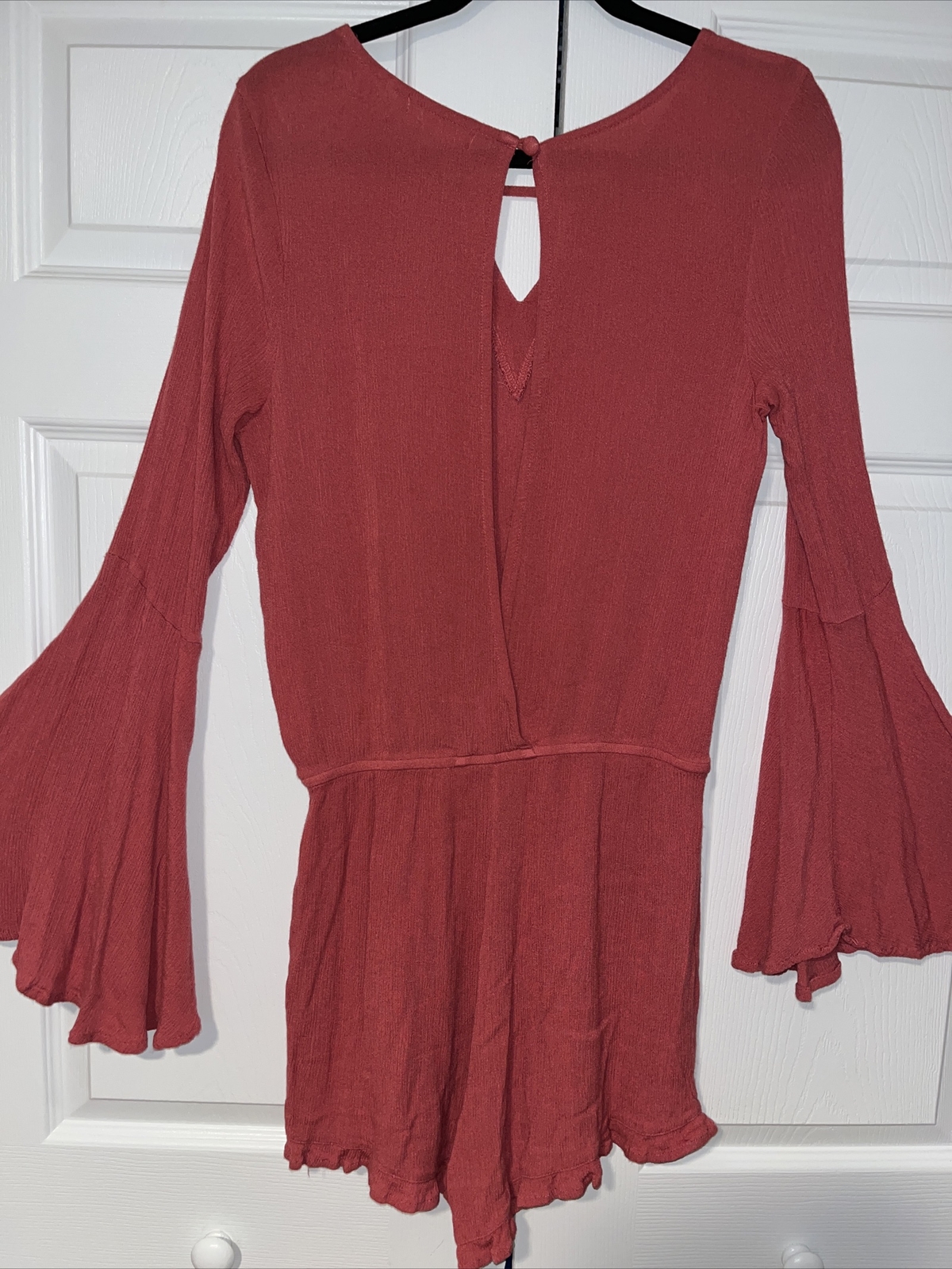 как выглядит Altard State Womens Bell Sleeve Floral Embroidered Romper Rose Pink Sz Large фото