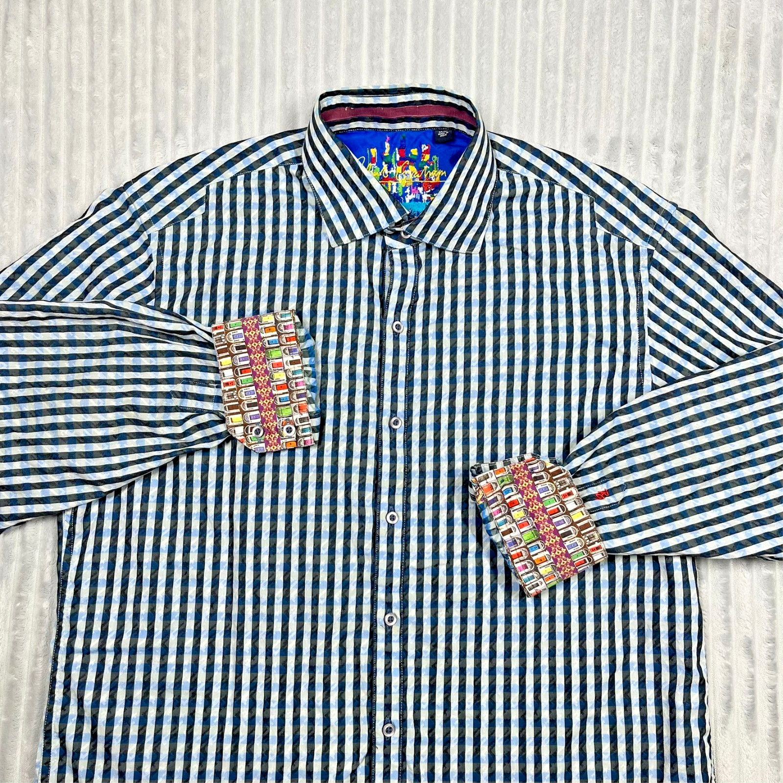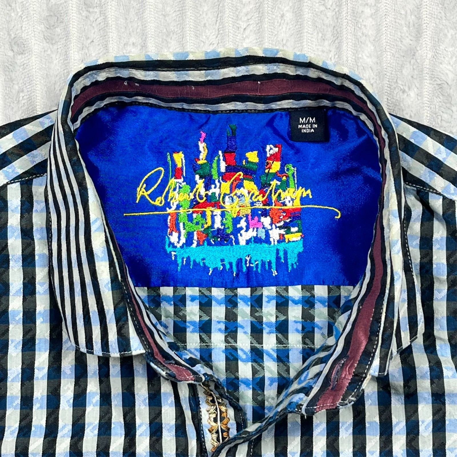 Robert Graham Classic Fit Flip Cuff Button Up Shirt Men's M Blue Plaid Western