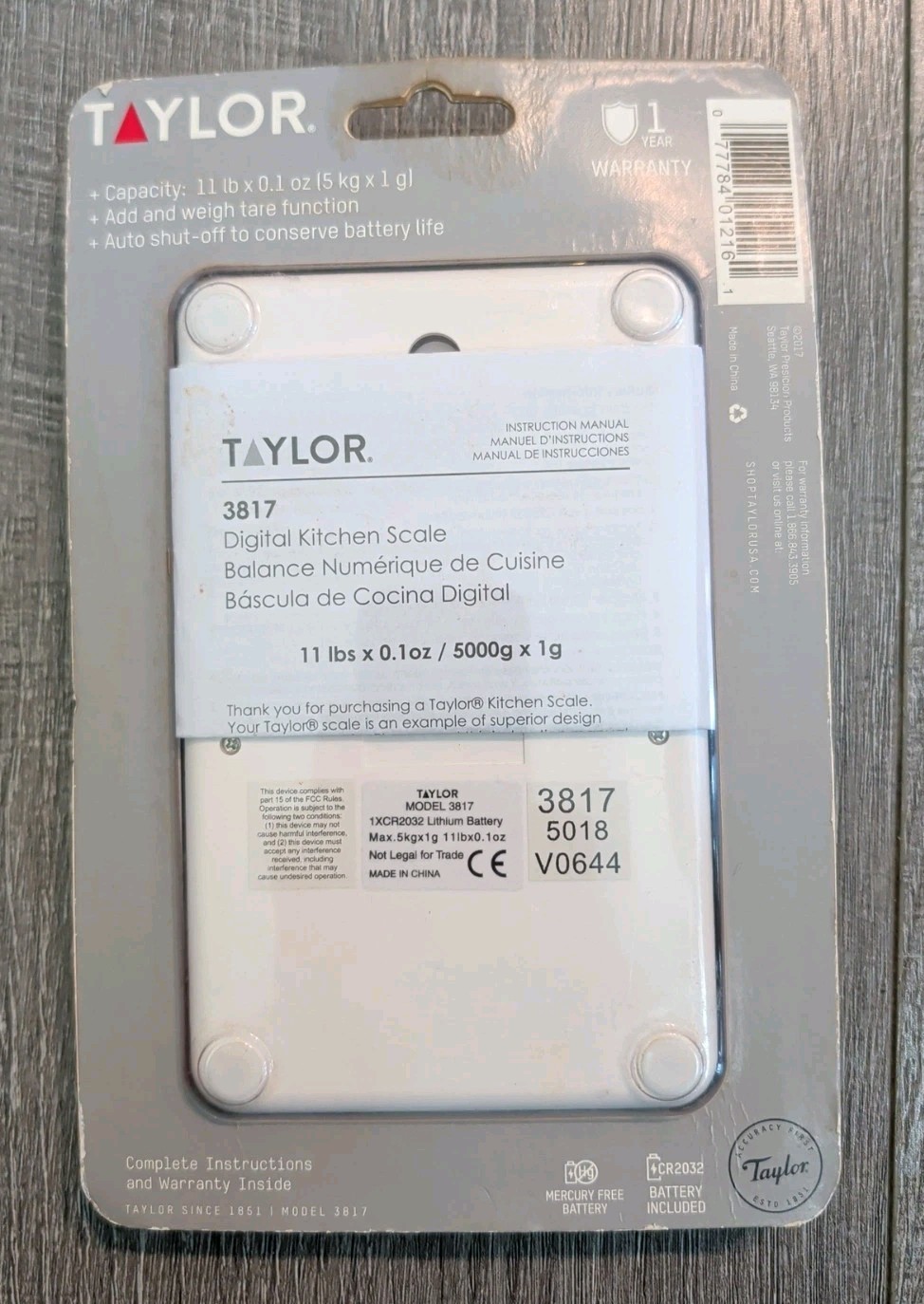 Taylor Precision Compact Digital Kitchen Scale White 11 lb 3817 Portable NEW