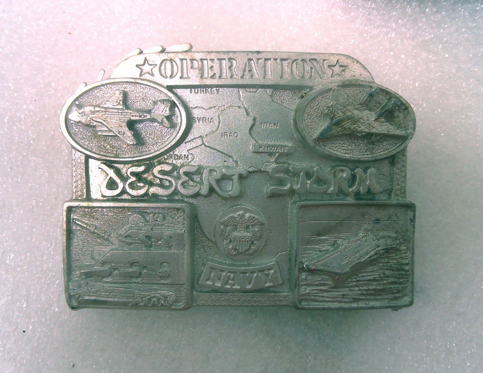 как выглядит Lot of 6 Pewter Belt Buckle 1991 OPERATION DESERT STORM NAVY UNFINISHED фото