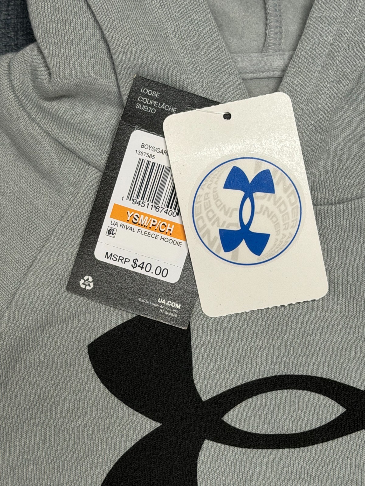 NWT Under Armour Rival Big Logo Fleece Hoodie Boys Small Light Grey Long Sleeve