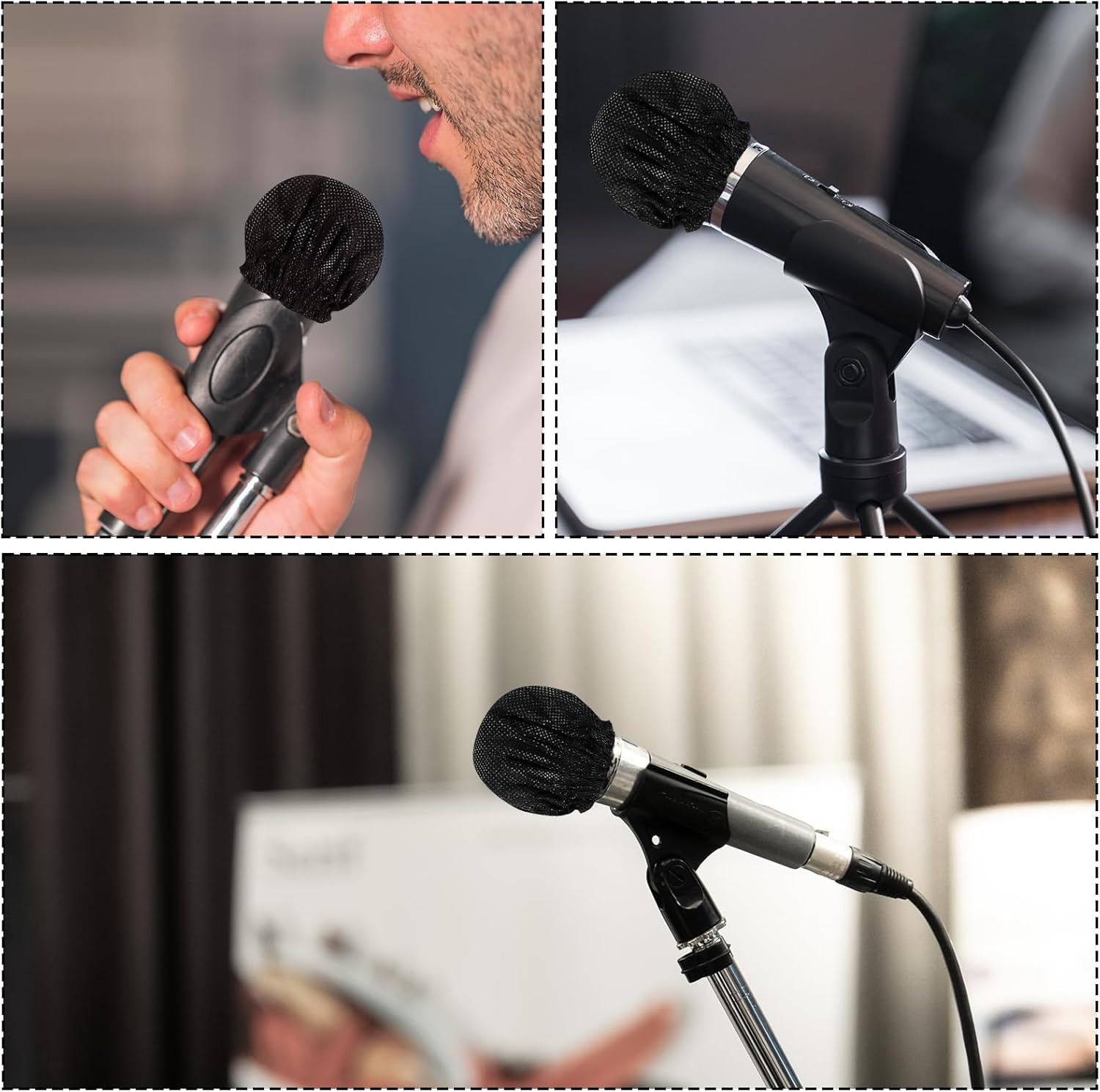 как выглядит 400 Pcs Microphone Cover Disposable Non-Woven Microphone Windscreen Protective C фото