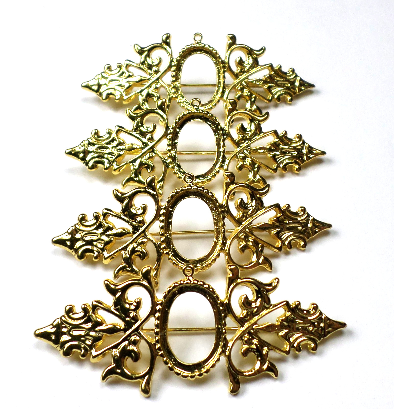 4 of 18x13mm Shiny Gold Victorian Gorgeous Brooch Pin Deco Settings 72x28mm