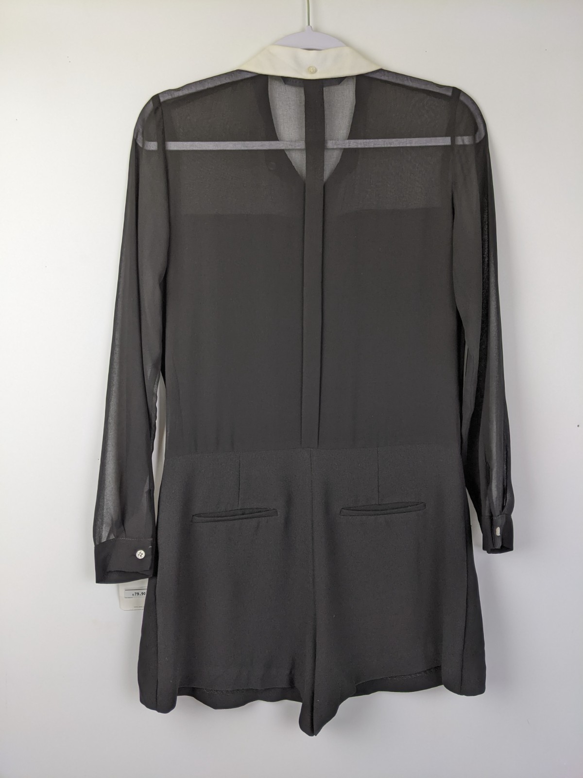 как выглядит Zara Basic Black Romper White Collar Womens Size Small New NWT Long Sleeve фото