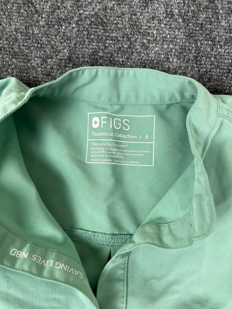 Figs Women's Scrubs Top Pocket Light Green two slash pocket Surgical Size S