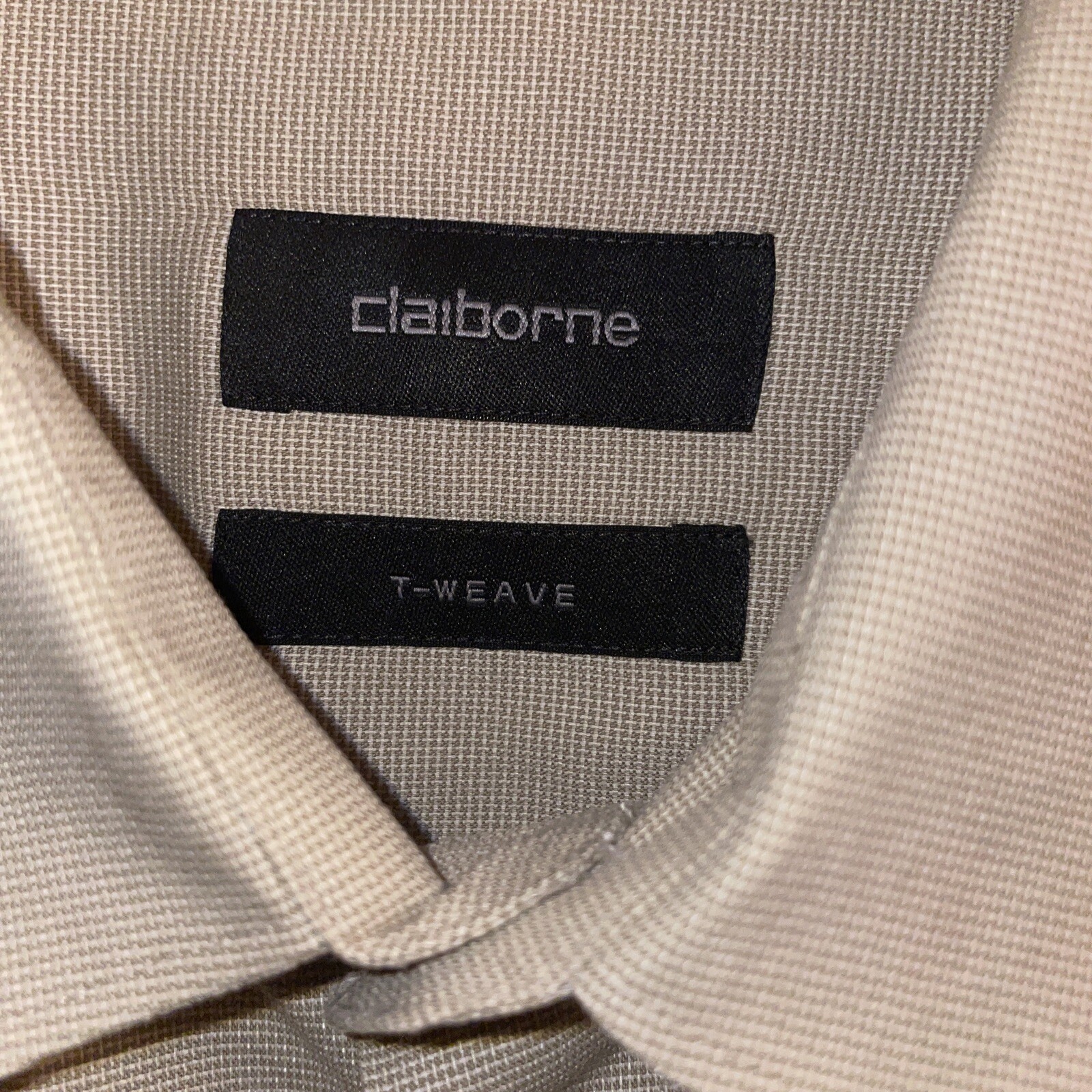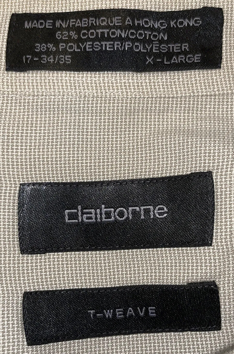 как выглядит Claiborne Shirt Men 17 34/35 Beige Long Sleeve T-Weave Church Dress Button Down фото