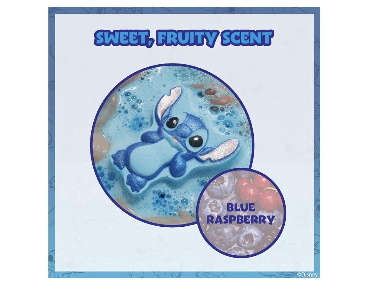 Disney Stitch Character Bath Bombs 3-Pack Blue Raspberry Scent Sweet Fruity 100g