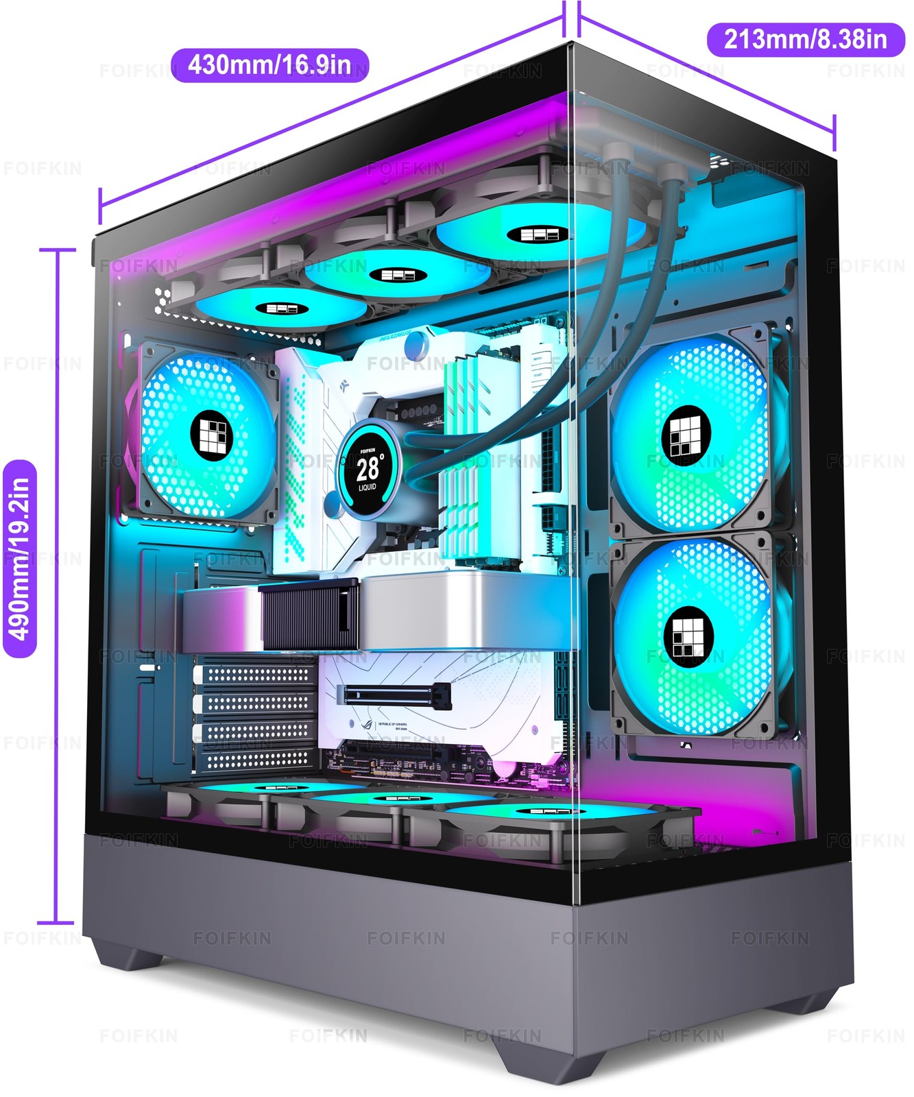 ATX Mid-Tower Gaming Case with 6 ARGB Fans, Type-C 360mm Rad Support.