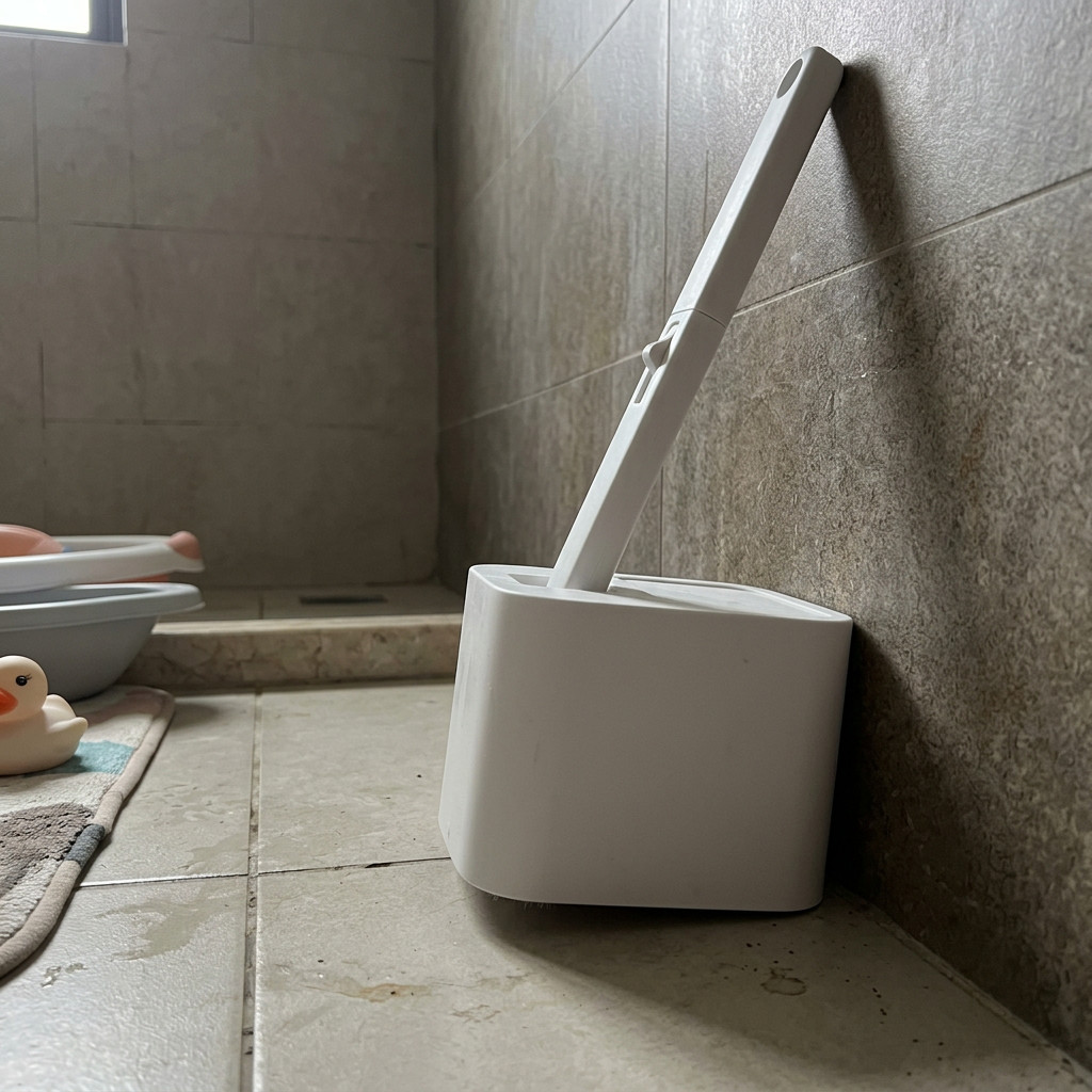Modern Disposable Toilet Brush Handle with Storage Stand - No Refill Heads