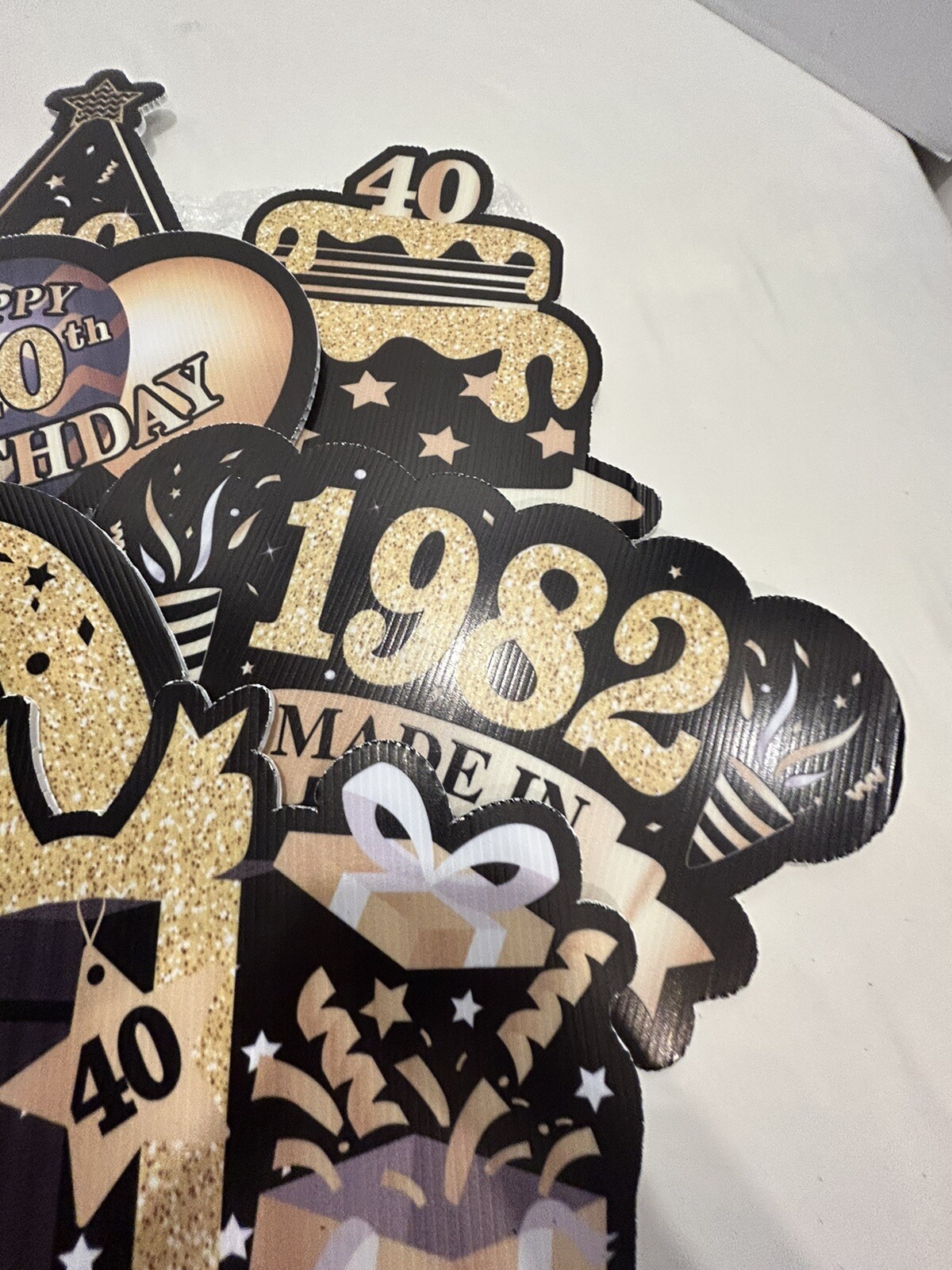 как выглядит 40th Birthday Yard Sign Black Gold Shiny 40th Lawn Signs Happy Birthday фото