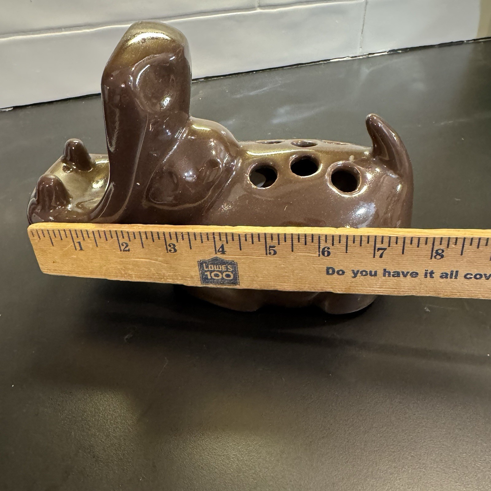 Vintage Brown Ceramic Hippo Soap Toothbrush pen card Holder Animal Bathroom