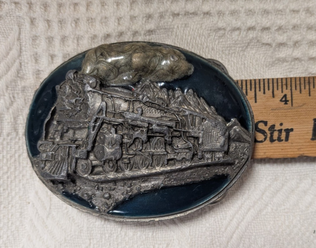 Vintage 1988 Siskiyou Steam Train Belt Buckle Pewter Hand Painted Railroad