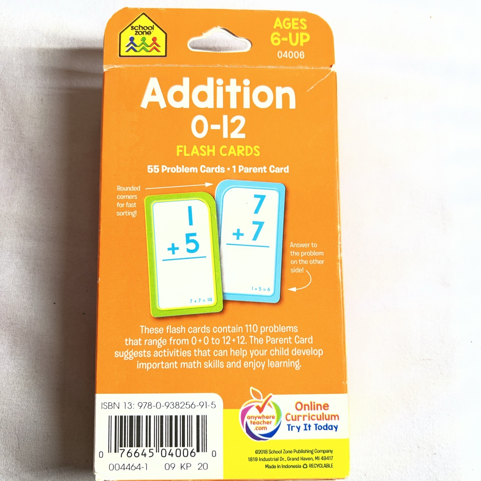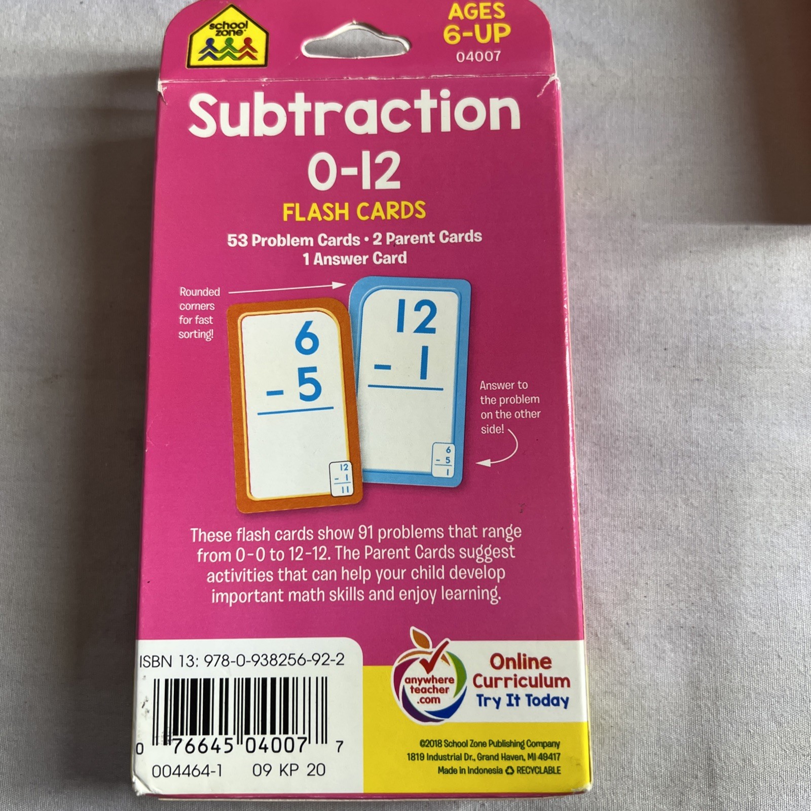 2018 School Zone Publishing Company 0-12 Addition Subtraction Flash Cards