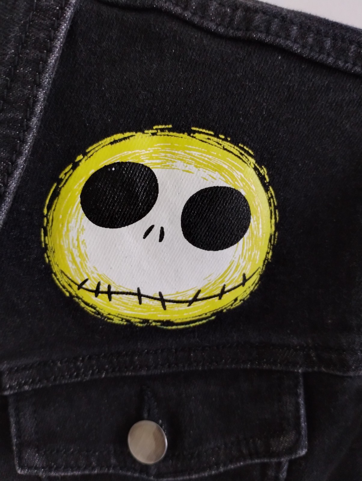 как выглядит The Nightmare Before Christmas Denim Jacket Sz Youth 7/8 Jack Skellington GLOWS фото