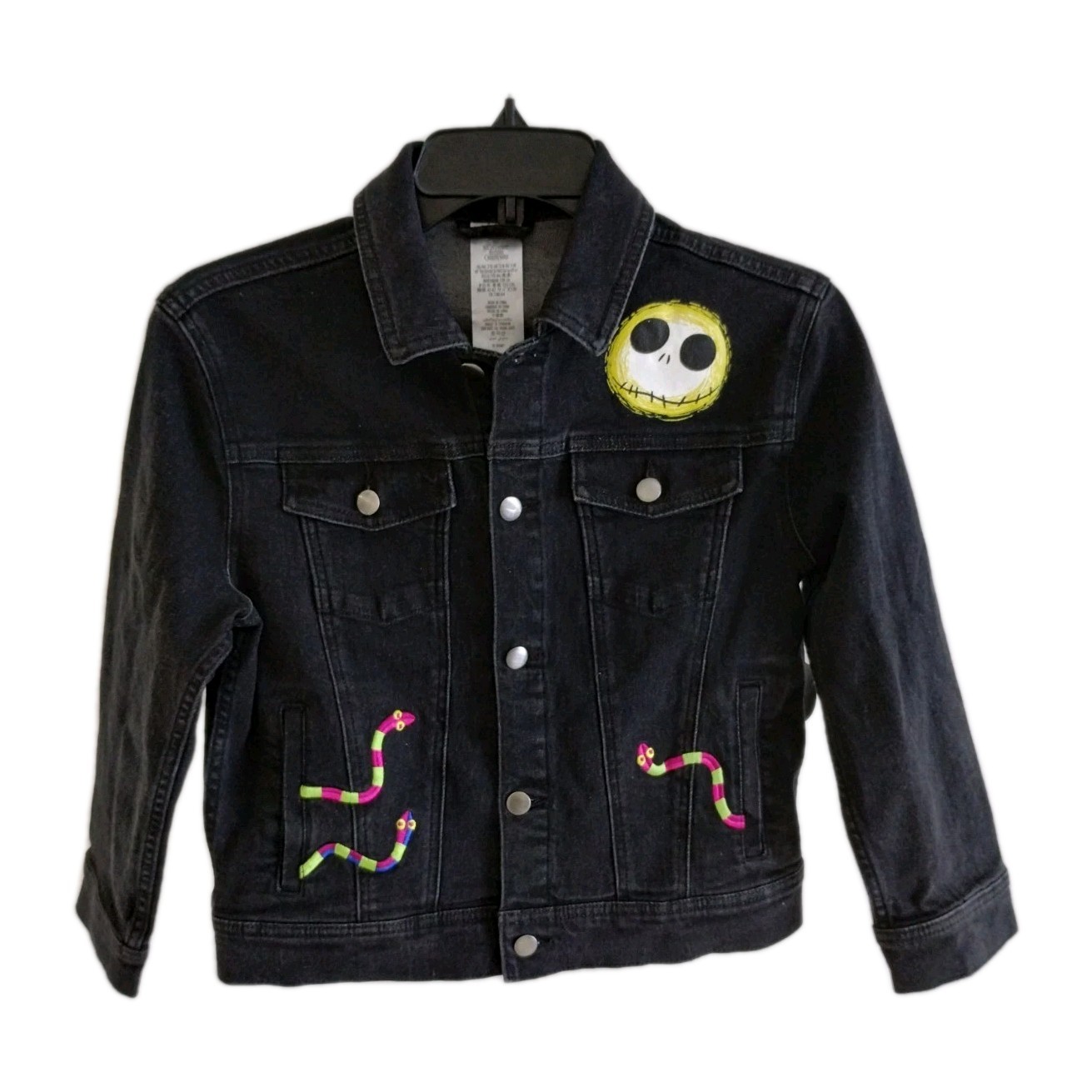 • The Nightmare Before Christmas Denim Jacket Sz Youth 7/8 Jack Skellington GLOWS