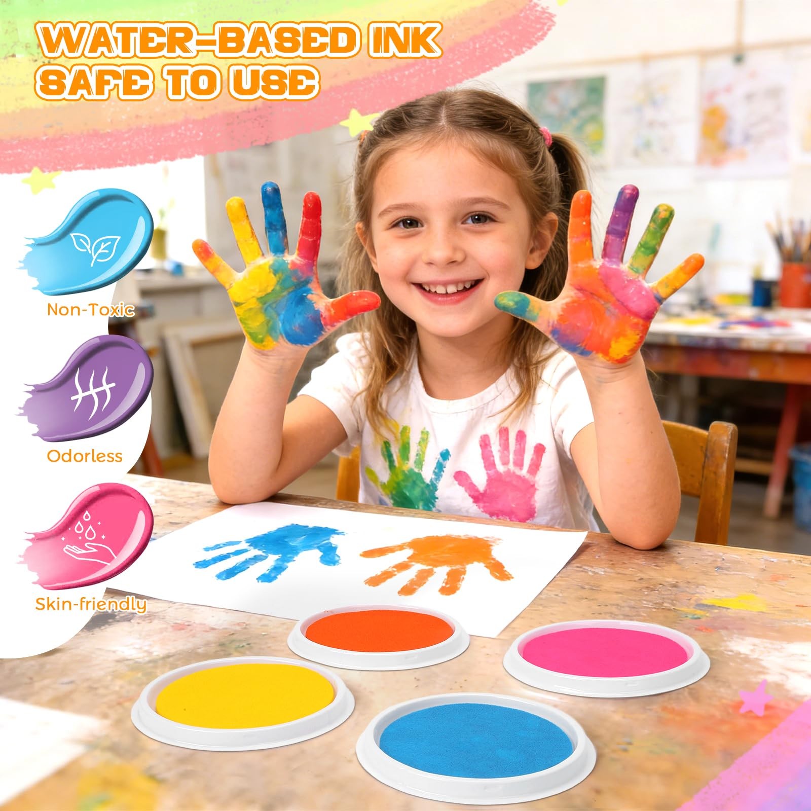 Nliyeisu 7 Inch Ink Pad Pads for Kids Washable, Large 7 inches, Eight Colors