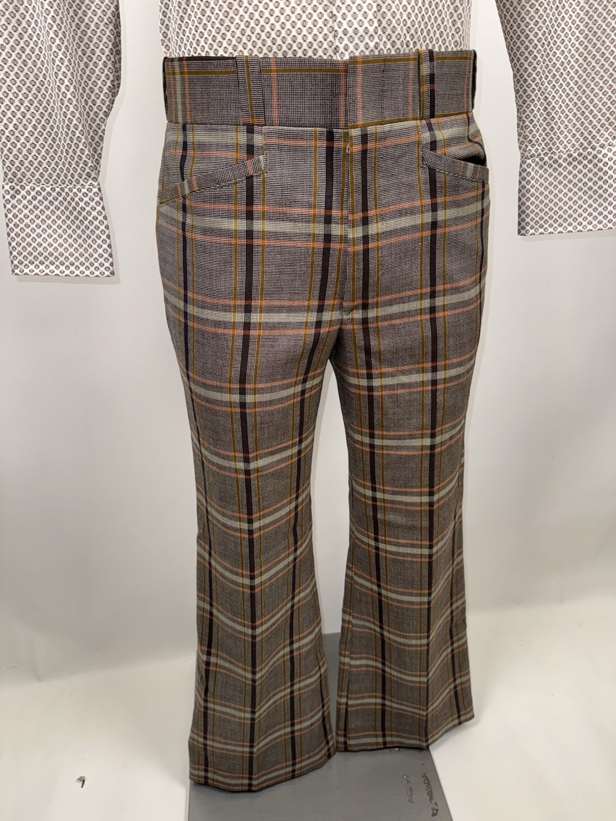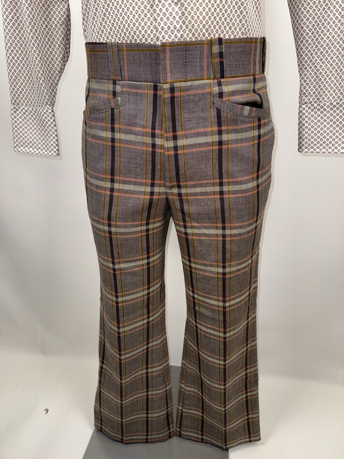 как выглядит Vtg Bell Bottom Pants Mens 33 30 Wool Polyester Disco Trousers Vtg 60s 70s Plaid фото