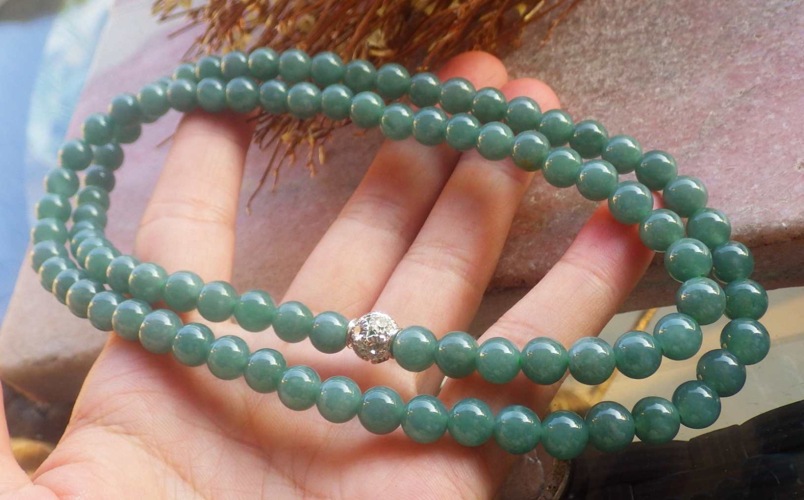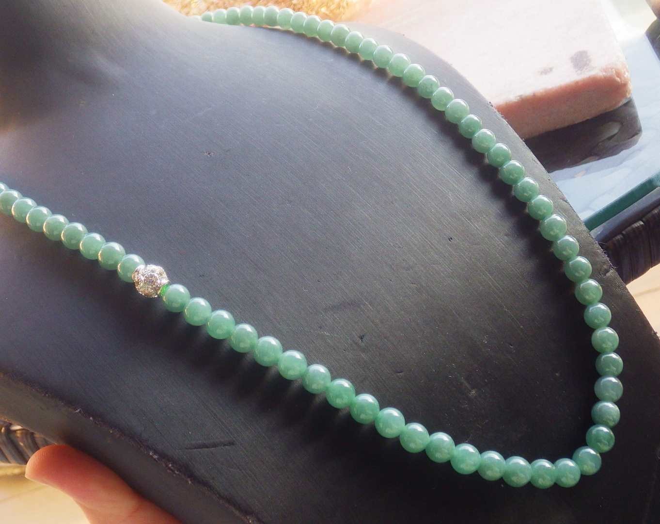 Video Certified Natural A Jade Jadeite Circle Bead Necklace 24 inches 124523 TS