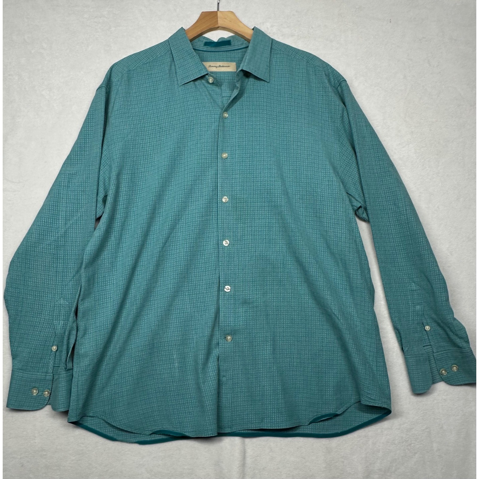 как выглядит Tommy Bahama Mens XL Silk Cotton Teal Green Button Down Shirt Long Slv фото