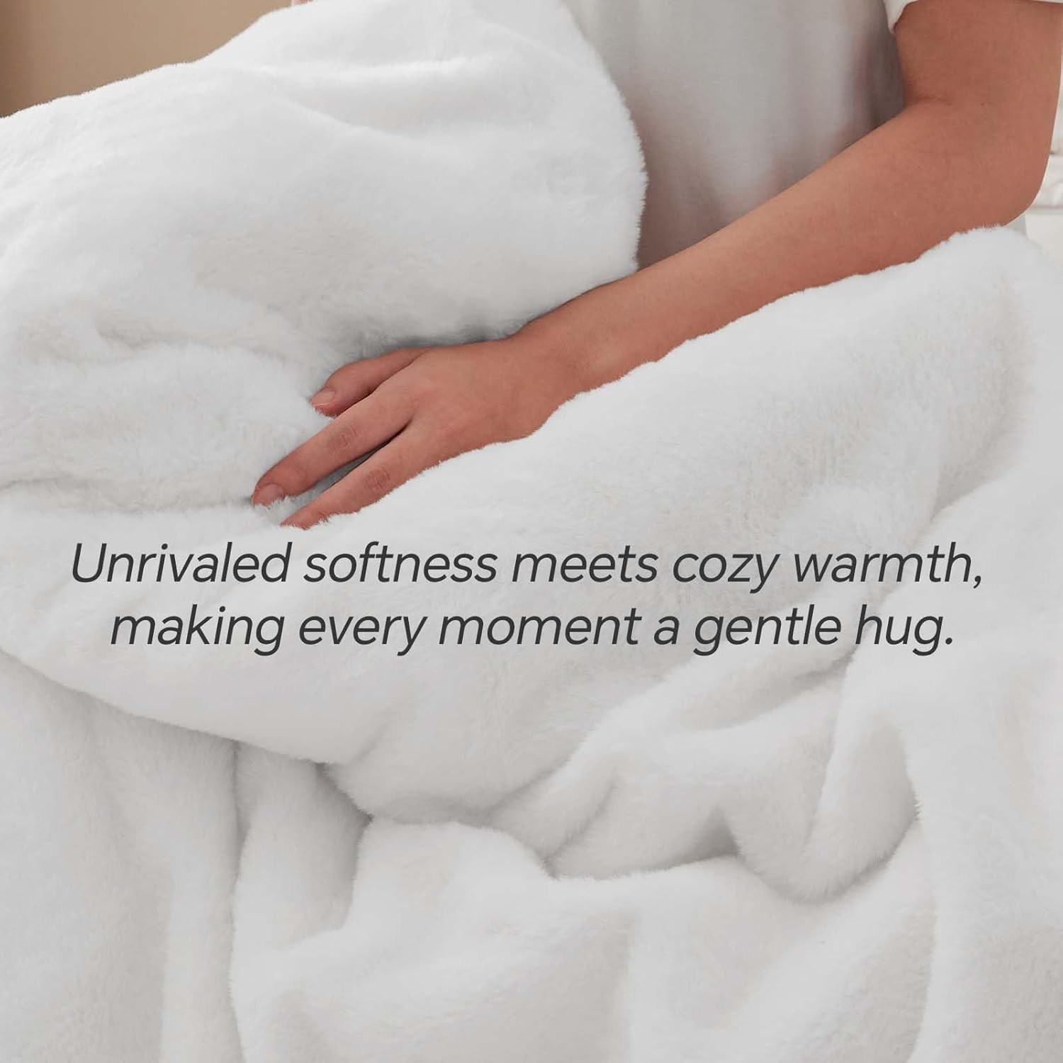 Faux Fur Fleece Queen Comforter Set - Fluffy Warm White Comforter Queen Size U