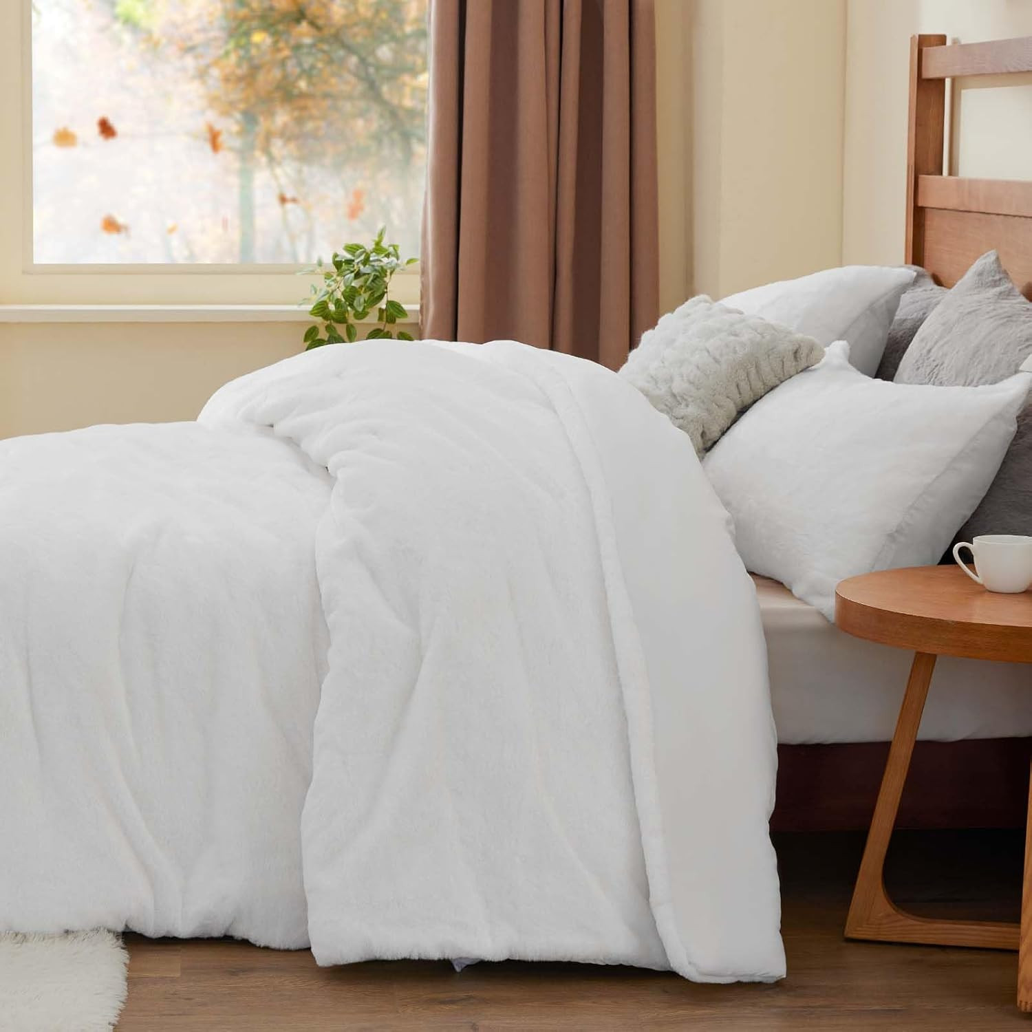 как выглядит Faux Fur Fleece Queen Comforter Set - Fluffy Warm White Comforter Queen Size U фото