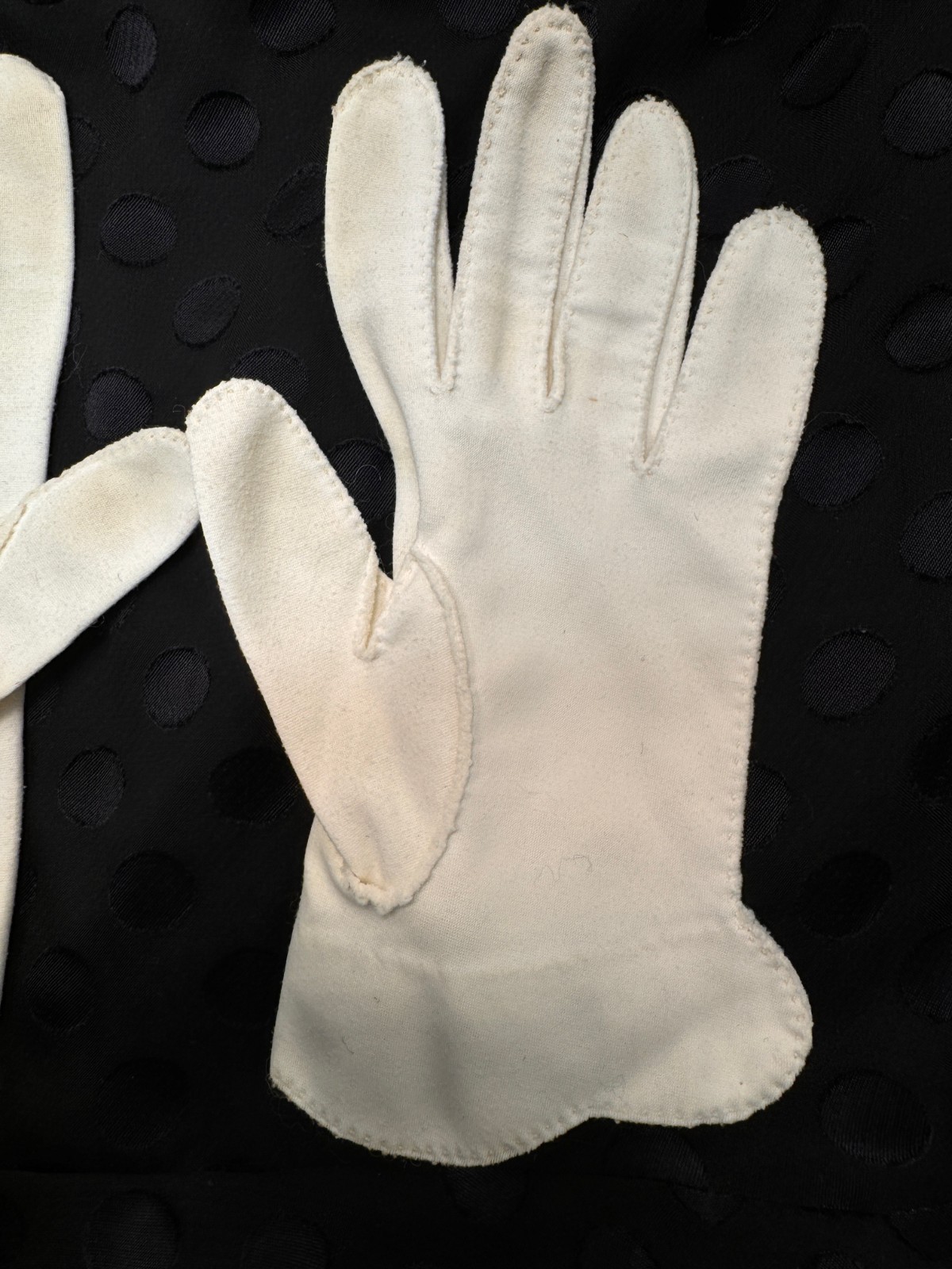 как выглядит Vintage Womens White Hand Gloves with Floral Embroidery Scallop Trim фото