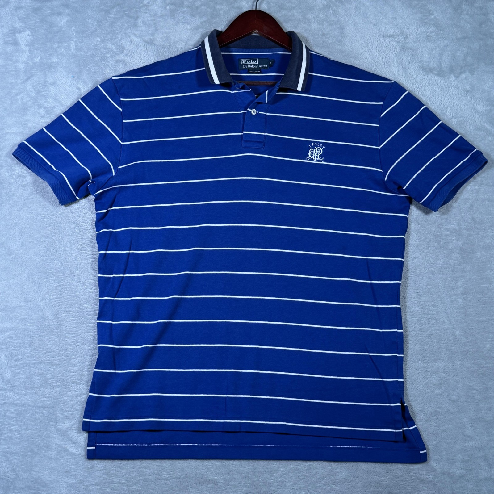 Polo Ralph Lauren Polo Shirt Mens Large Blue White Striped Cotton Embroidered