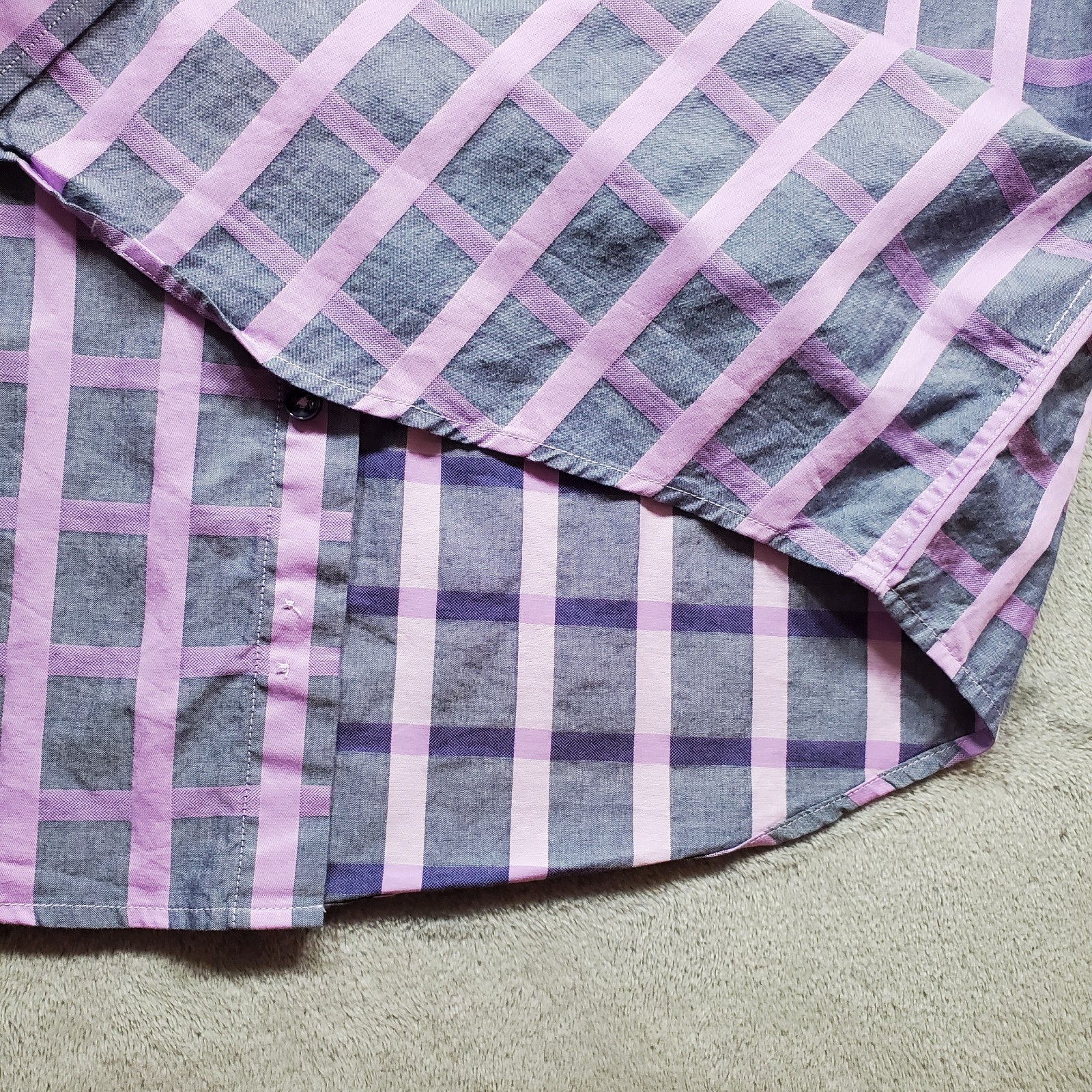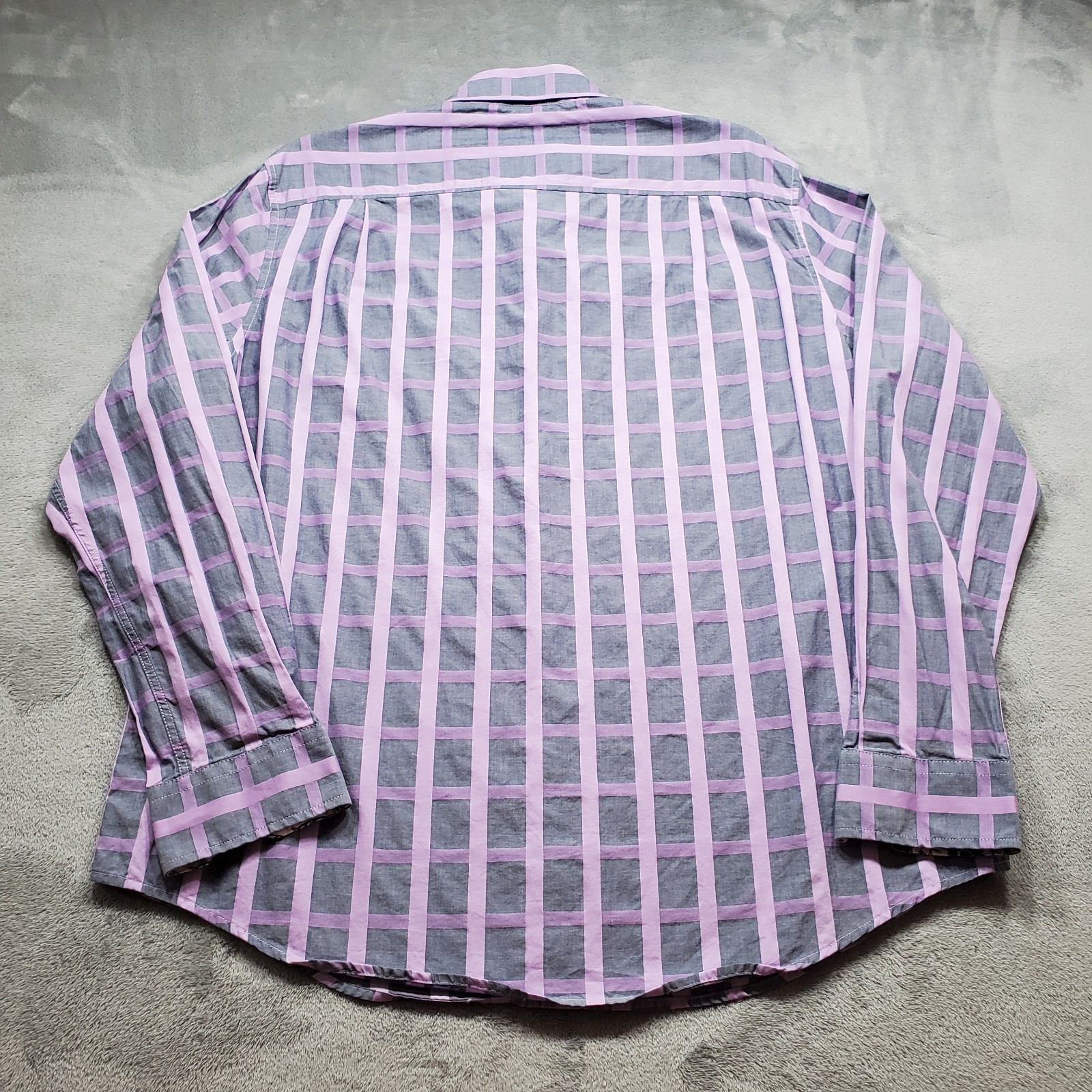 Tasso Elba Long Sleeve Button Up Plaid Casual Dress Shirt Gray Purple Men Sz L