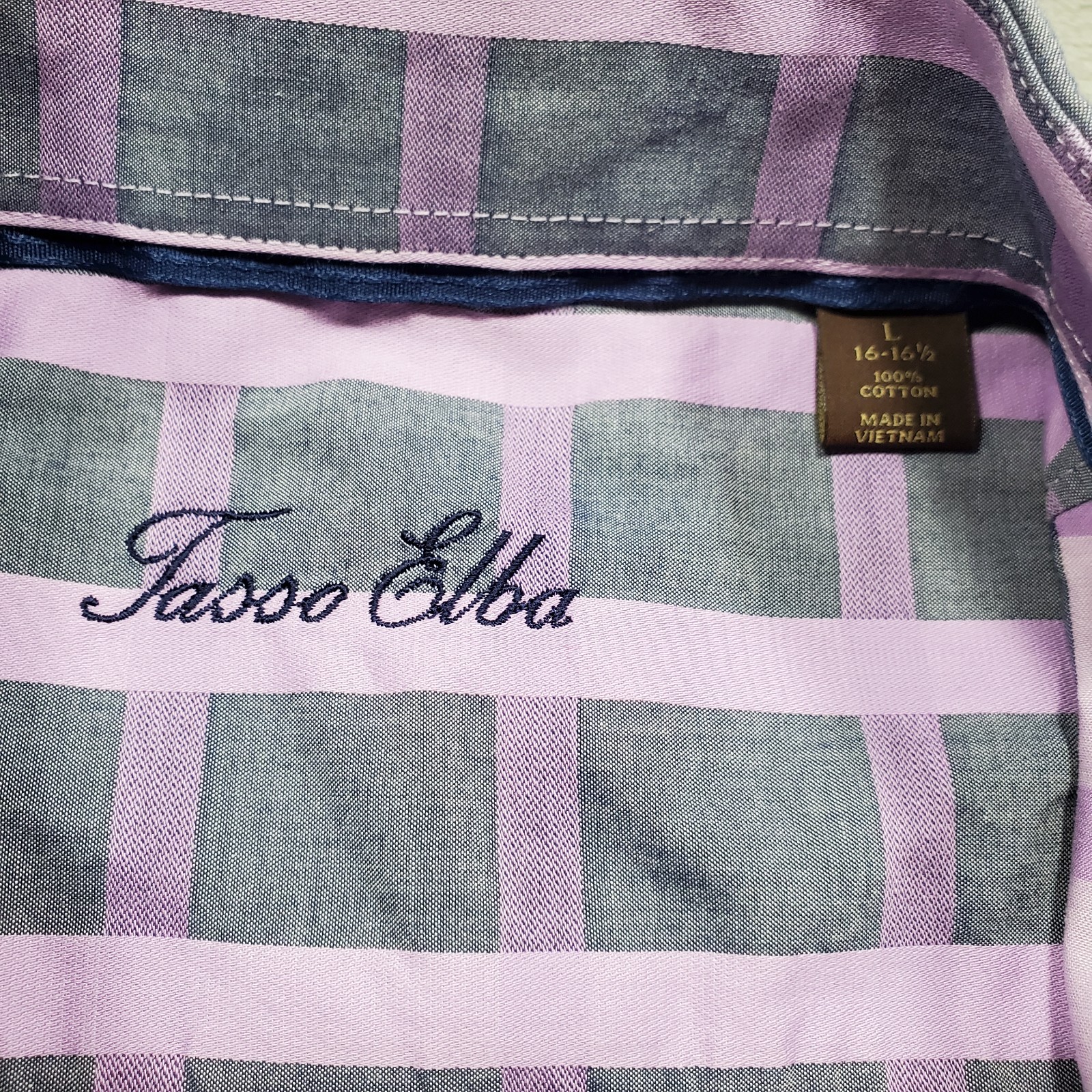 как выглядит Tasso Elba Long Sleeve Button Up Plaid Casual Dress Shirt Gray Purple Men Sz L фото