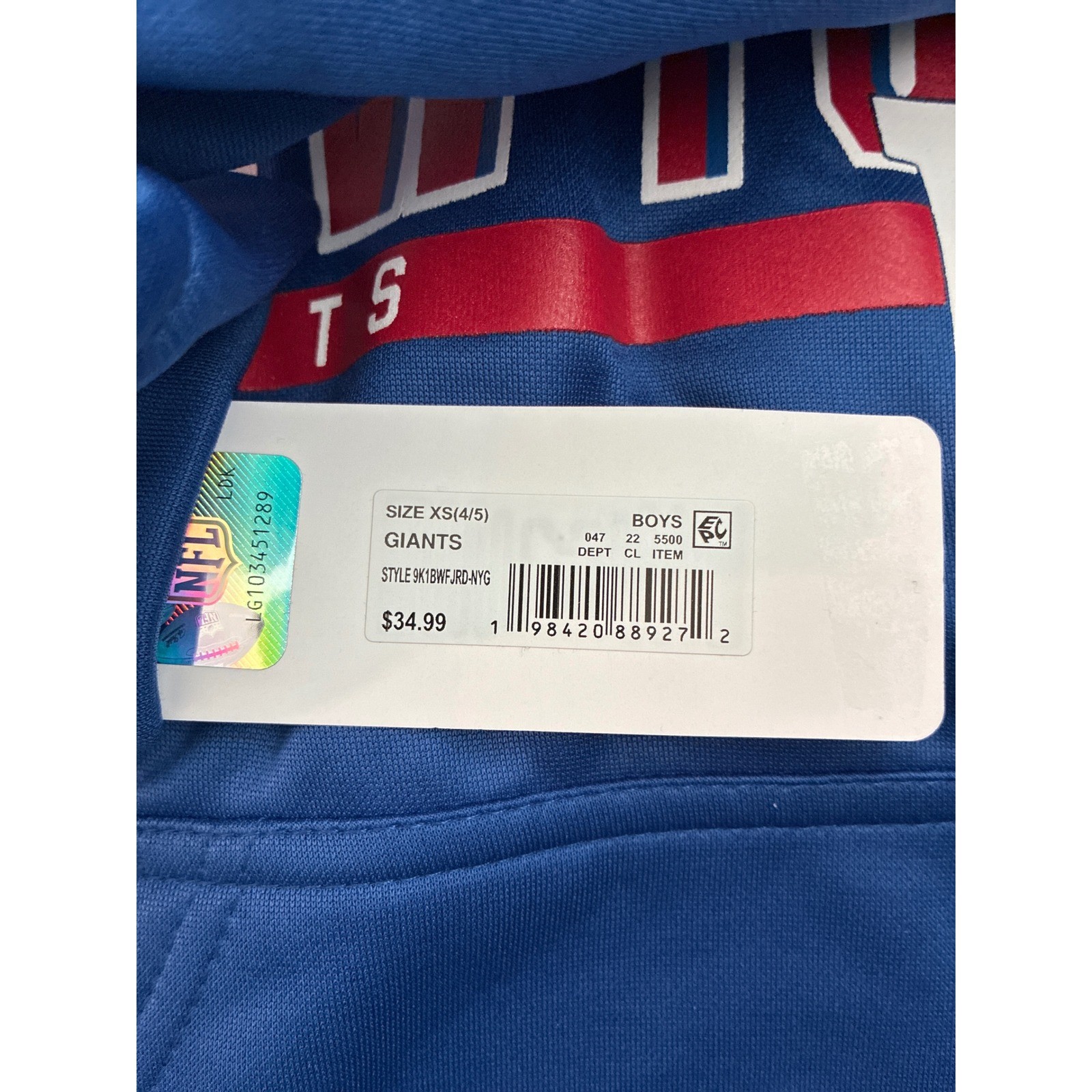 как выглядит NFL Team Apparel New York Giants Boys XS 4/5 Royal Blue Pullover Hoodie фото