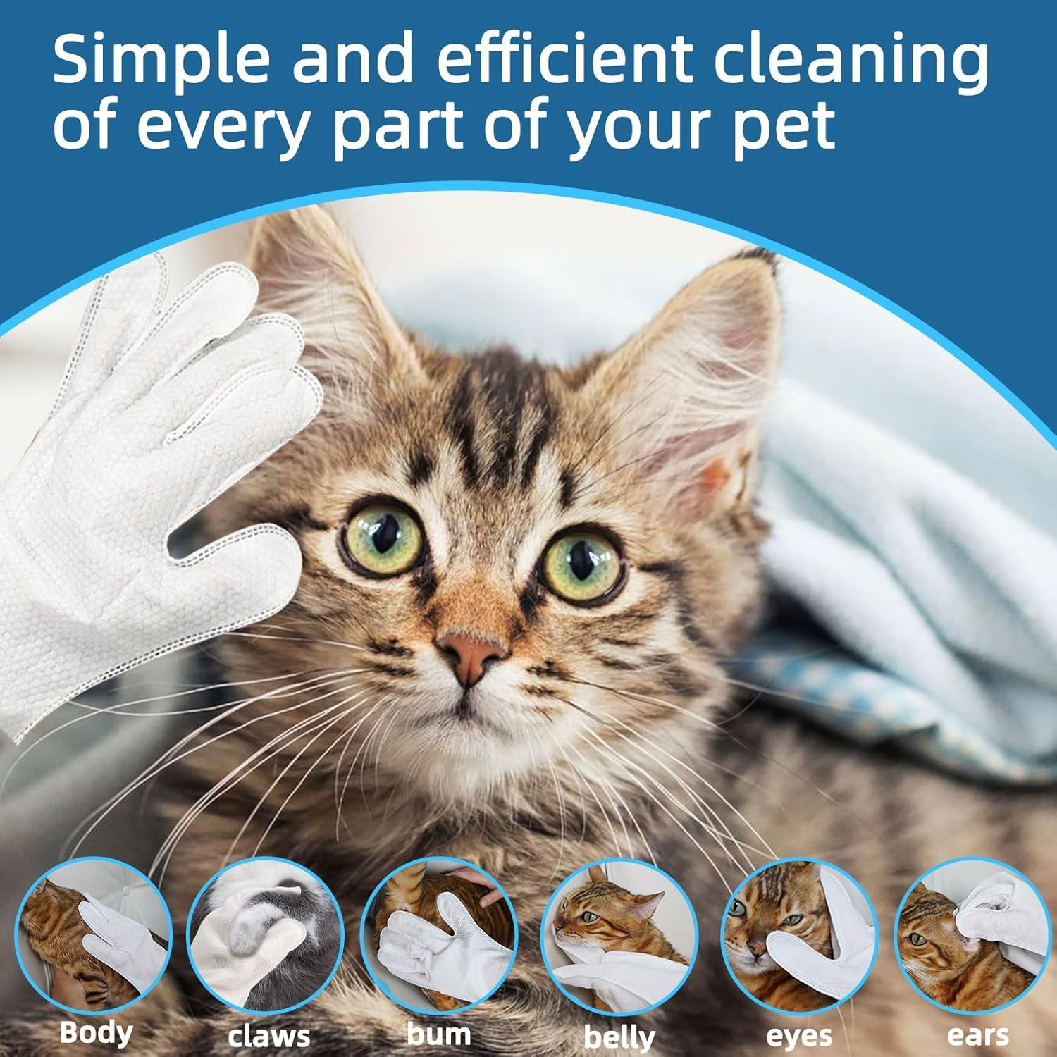 6-30x PET Cleaning Deodorizing Bathing Wipes for Dogs Cats, Hypoallergenic Glove