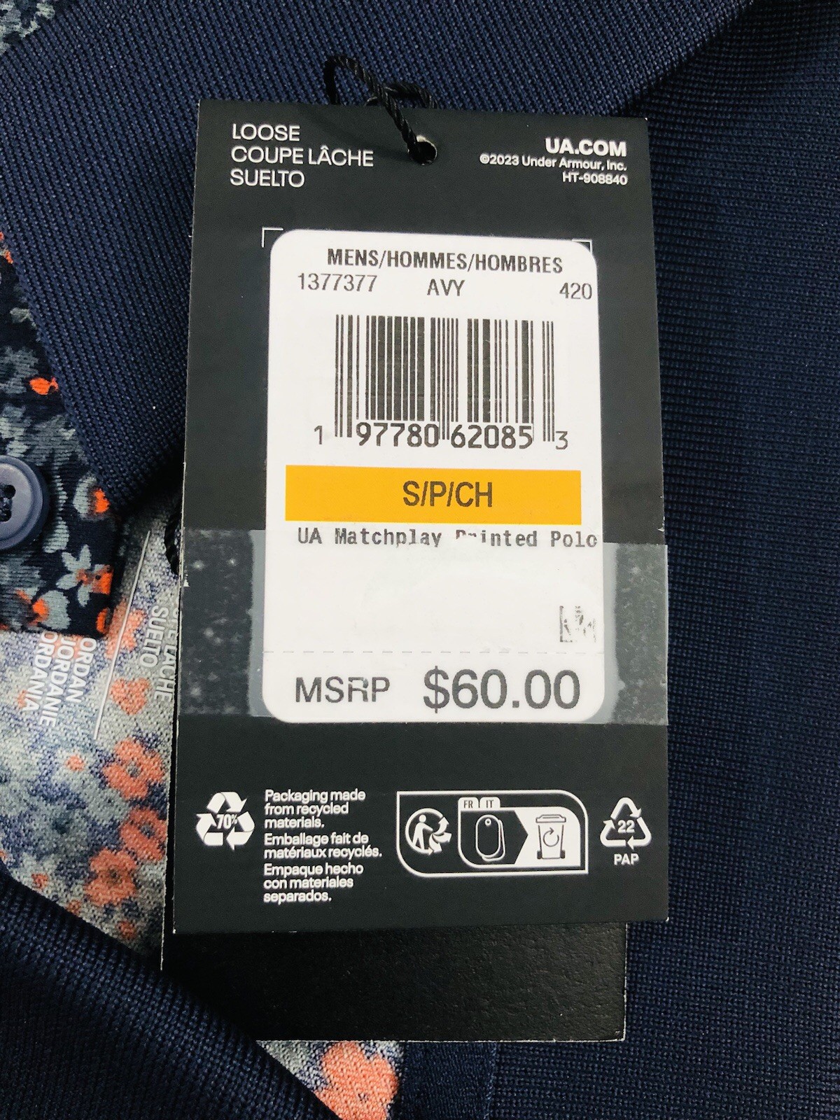 как выглядит NEW..MEN SMALL UNDER ARMOUR MATCHPLAY PRINTED GOLF POLO WASHED BLUE MULTI фото