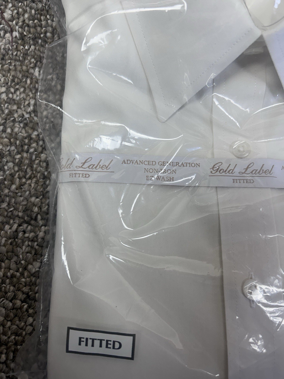 Roundtree Yorke Gold Label Mens 17.5 34 Non-Iron Pinpoint Cotton Shirt Ivory