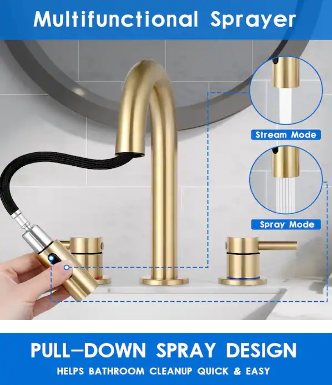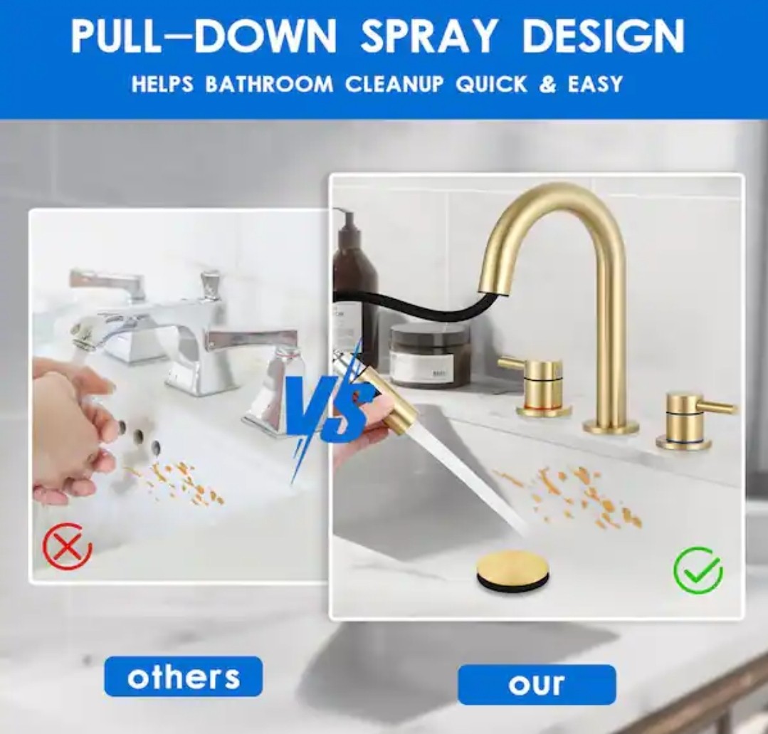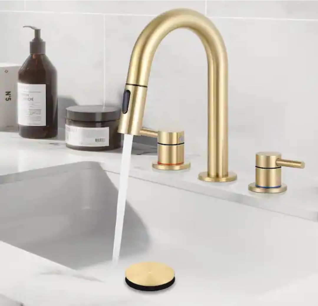 AKLFGN 8 Widespread Brushed Gold Bathroom Faucet 3 Hole Pull Out Sprayer Pop-Up