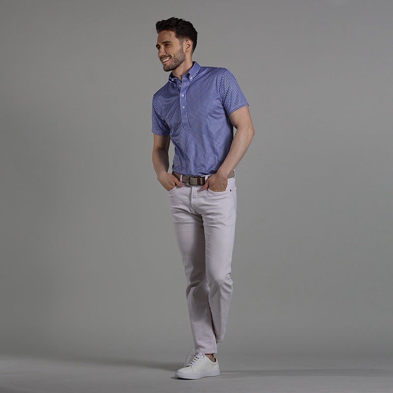 Collars Co - Oxford Button Down Collar Polo - Medium - Blue Gingham - NWT