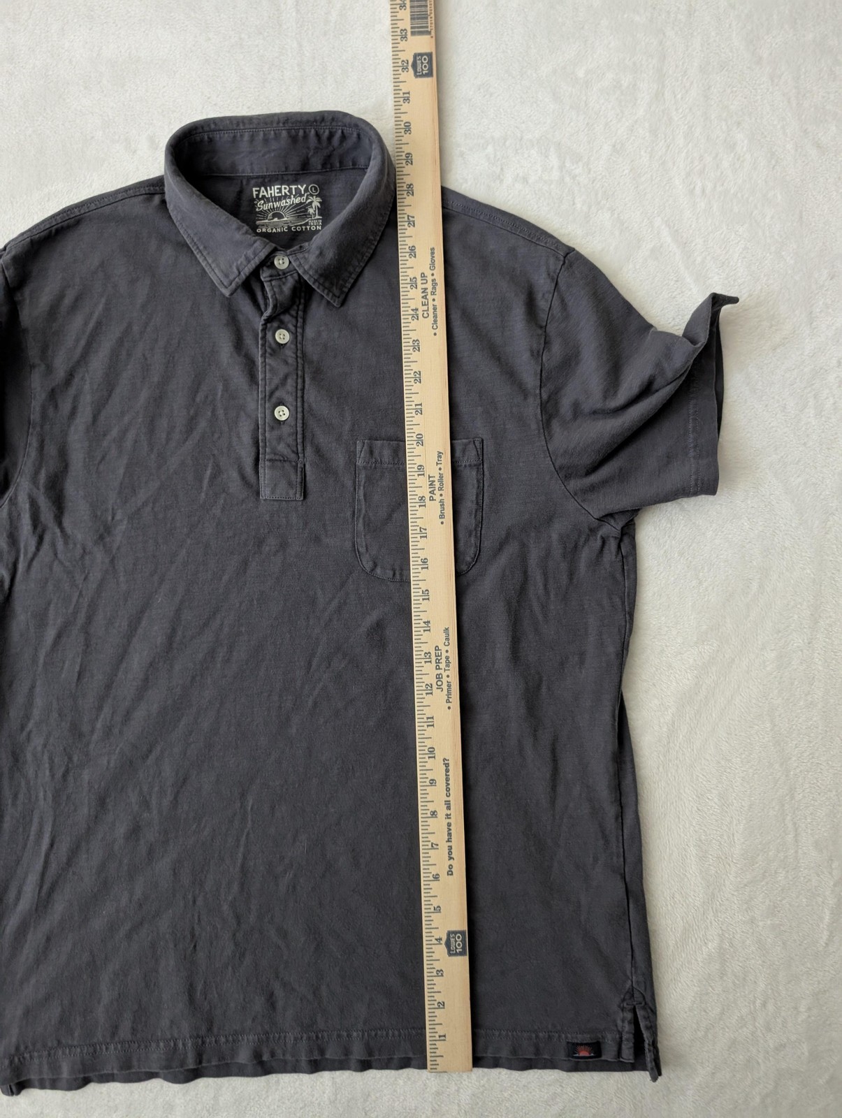 Faherty Polo Shirt Mens Large Blue Sunwashed Organic Cotton Chest Pocket