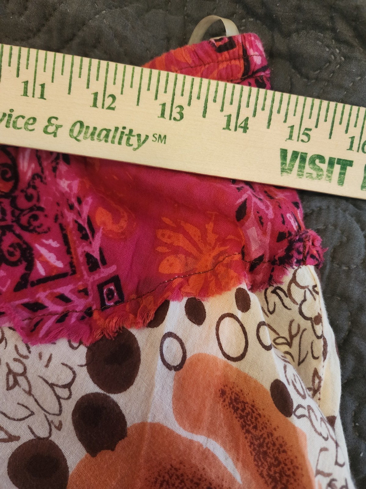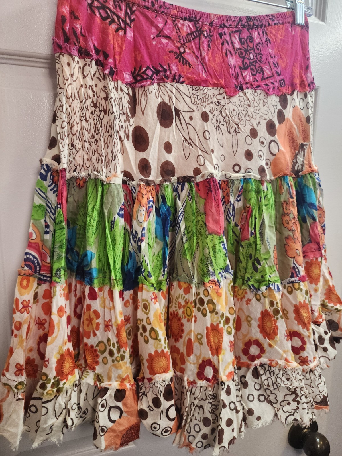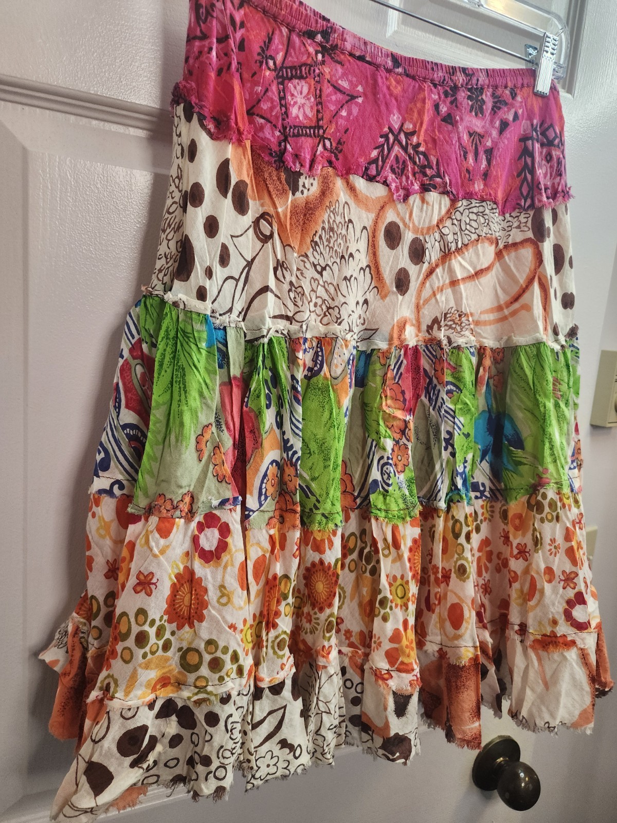 как выглядит Boho Hippie Tiered Patchwork Skirt Large Raw Edges Gypsy Festival фото