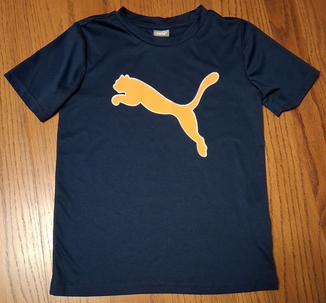 PUMA Boy's 2-Piece T-Shirt Shorts Set Size 6 Navy Blue Gold-Yellow Kids